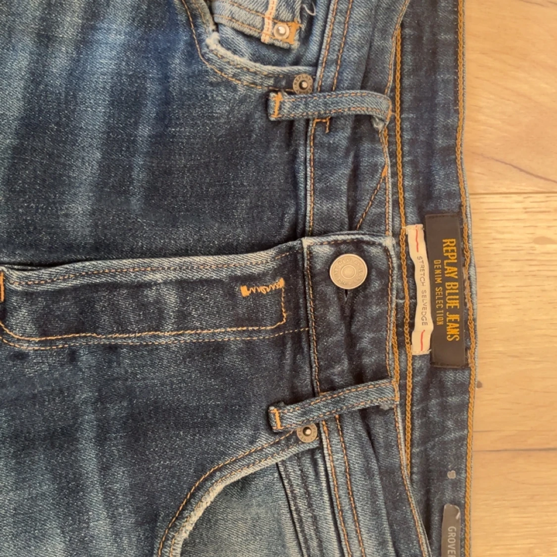 Replay jeans i modellen grover. Snygg färg med snygg wash. Byxorna är använda och har täcken på användning, vissa färgskillander kan förekomma, tappat lite färg på benet (fråga om bild). Därav är priset lite billigare! Hör av er vid fler frågor och bilder.