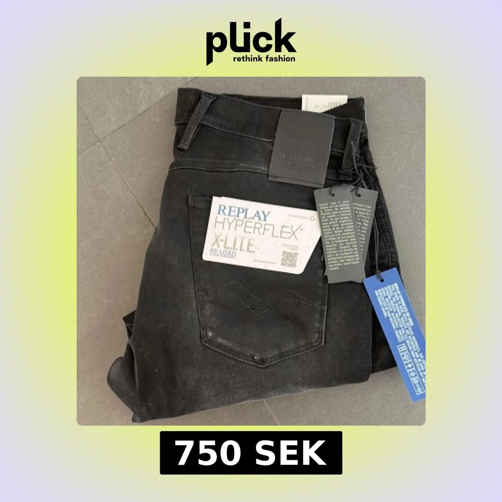 Helt nya replay jeans i storlek 34/30 men är väldigt små i storleken så är mer som 30/30. Jag är 175 och väger 65 kg och dom sitter bra. Tveka inte att höra av er vid funderingar. Midjan är 40cm och längden är 98cm.