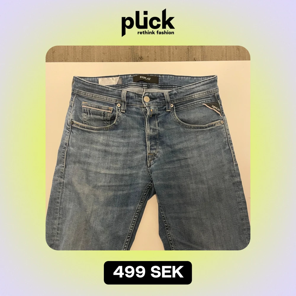 Säljer ett par snygga blå jeans från Replay i storlek 30/32. De är gjorda av ekologisk bomull och har en klassisk femficksdesign. Perfekta för både till skolan eller helger😄 pricet är ej hugget i sten 🪨skriv ifall ni har funderingar eller frågor😄😄