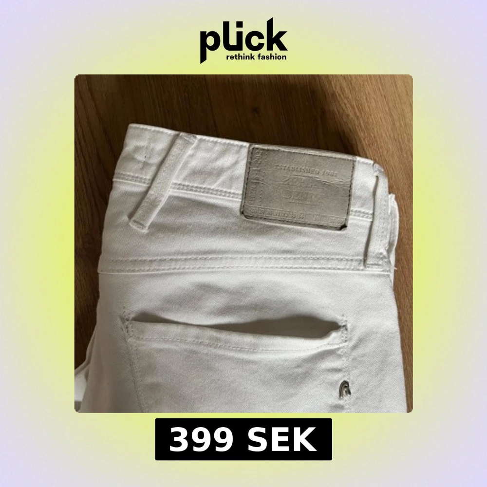 Säljer ett par vita Replay Anbass jeans med en klassisk design med silverfärgade knappar. Byxorna har en slim passform och är perfekta för dig som vill ha ett fräscht och stilrent par jeans till sommaren. Jeansen är använda ungefär 5 gånger.