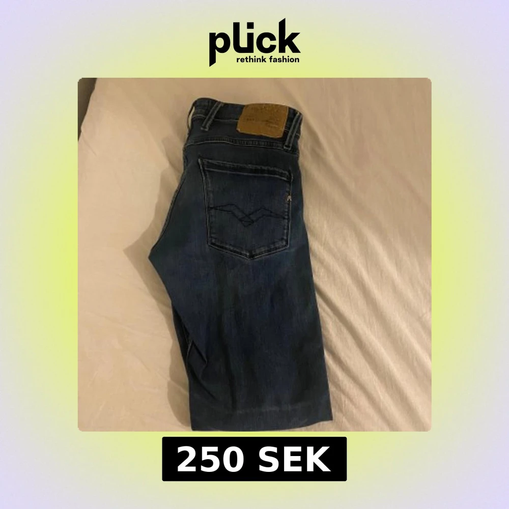 Säljer ett par blåa jeans från Replay med klassisk femficksdesign och snygga detaljer på bakfickan. Jeansen har rak passform och är tillverkade i mjukt denimtyg som sitter skönt hela dagen. Perfekta för dig som gillar stilrena och tidlösa jeans.