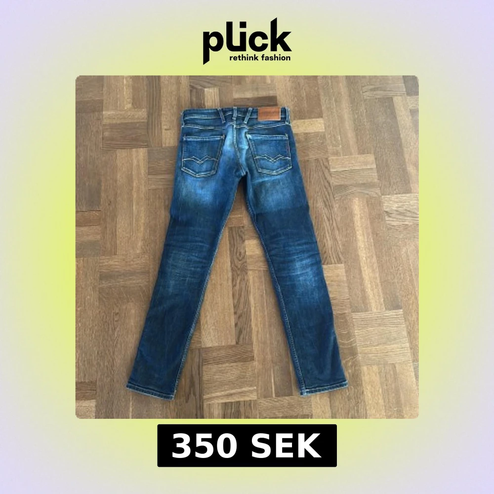 Säljer ett par Replay Anbass jeans i klassisk blå tvätt eftersom dem har blivit för små. Modellen är slim fit med normal midja och raka ben. Jeansen har fem fickor, dragkedjegylf och coola detaljer på bakfickorna. Perfekta för dig som gillar en smalare passform.