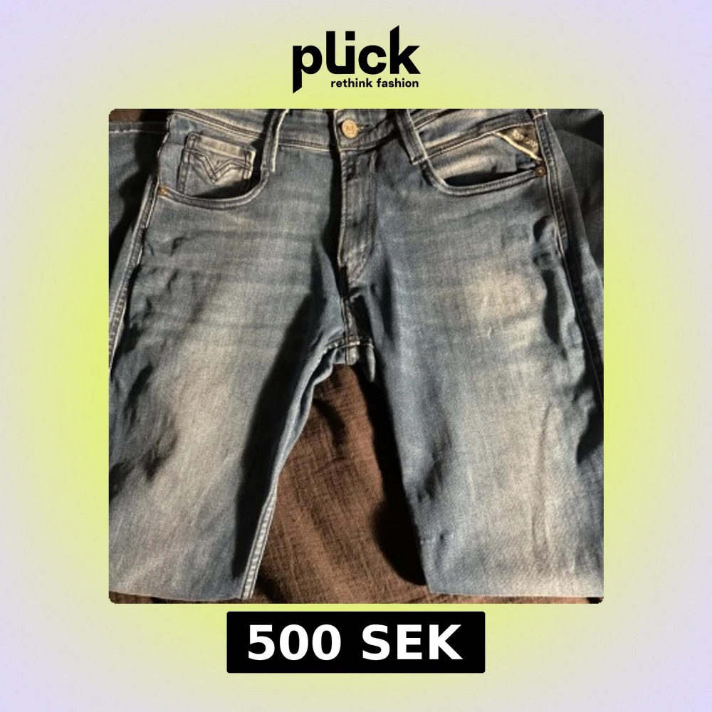 Säljer ett par klassiska blå jeans från Replay, modell Anbass. Jeansen har fem fickor, dragkedja och knapp i midjan samt snygga slitningar och detaljer på bakfickorna. Perfekta för dig som gillar en tidlös och stilren look.