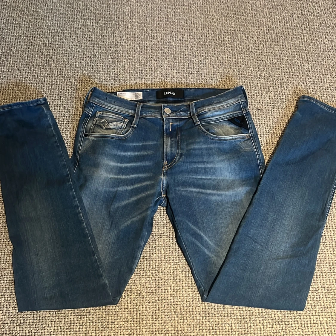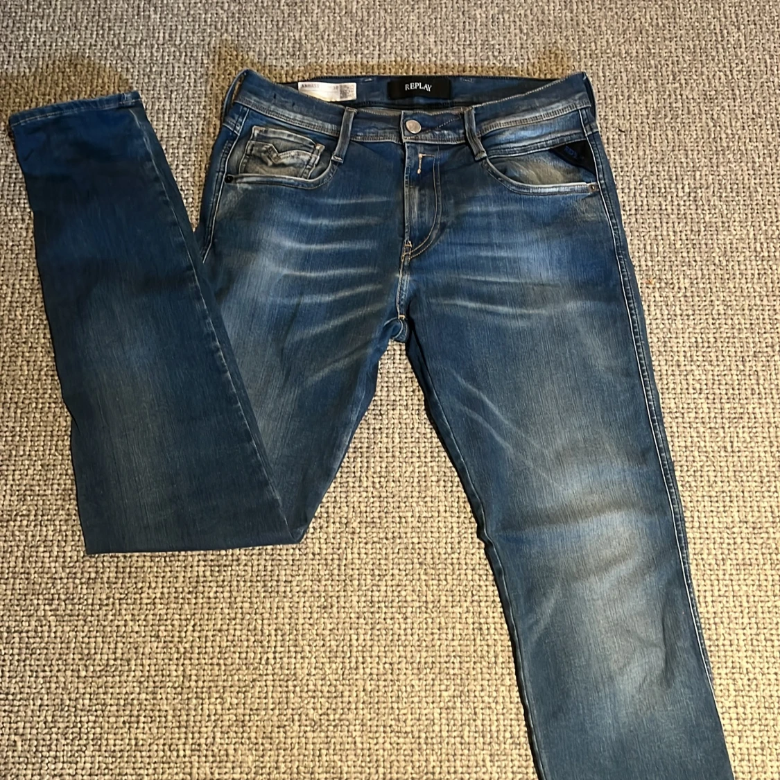 Då var det dags att sälja replay jeansen då de inte längre passar. De är ett par Abbas i storlek W30, L32 med stretch vilket gör de riktigt sköna. Passar perfekt för dig runt 180cm. Jeansen har den klassiska 5 fick- designen✅Prisset kan diskuteras vid en smidig affär! Bara att höra av dig om du har fler frågor.🙌