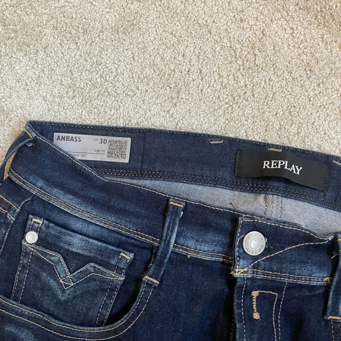 Mörk blå replay anbass i storlek w30! | nypris är runt 1600 men mitt pris är 650! | skicket är utmärkt och jeansen har inga tecken på användning! | skriv vid minsta fråga eller fundering