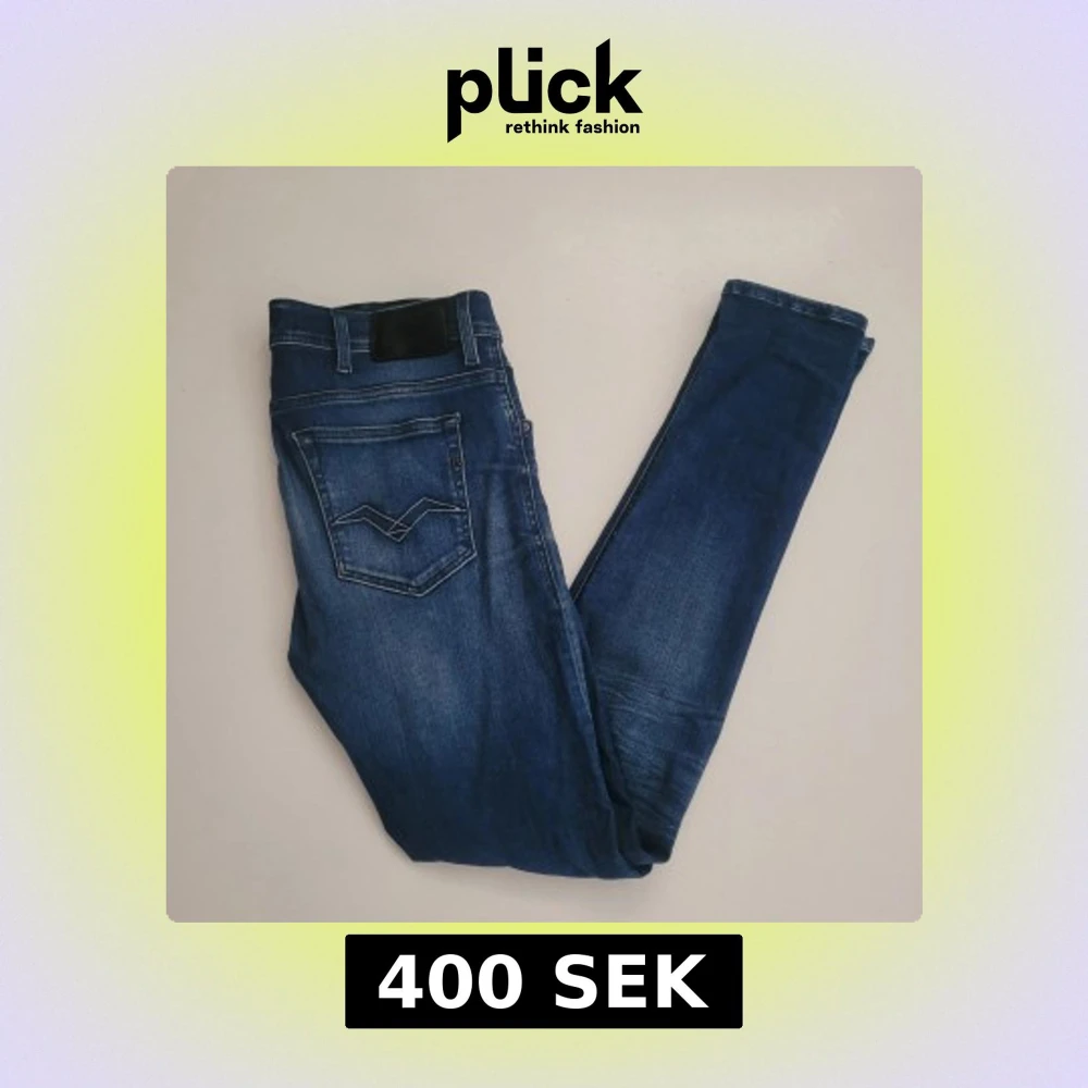 Snygga blå jeans från Replay, modell Anbass, med klassisk femficksdesign och cool broderad bakficka. Jeansen har en smal passform och är tillverkade i mjukt denimtyg med lätt tvättad look. Perfekta för dig som gillar stilrena och moderna jeans.