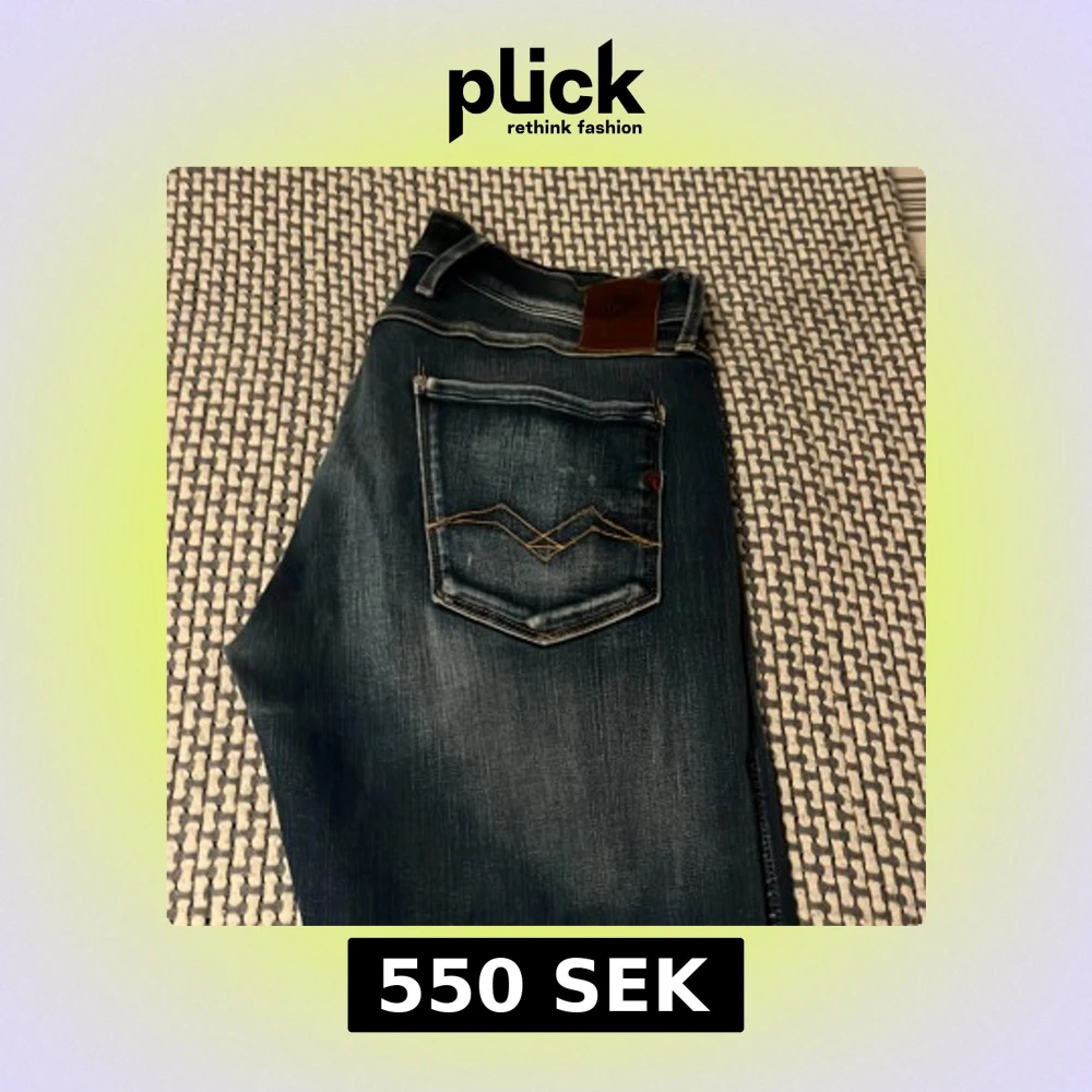 Snygga Replay Anbass jeans i blå tvätt med slitningar och trasiga detaljer. Klassisk femficksmodell med coola kontrastsömmar på bakfickan. Midwaist passform och tillverkade i stretchig jeanstyg för extra komfort. Perfekta för en avslappnad streetstil.