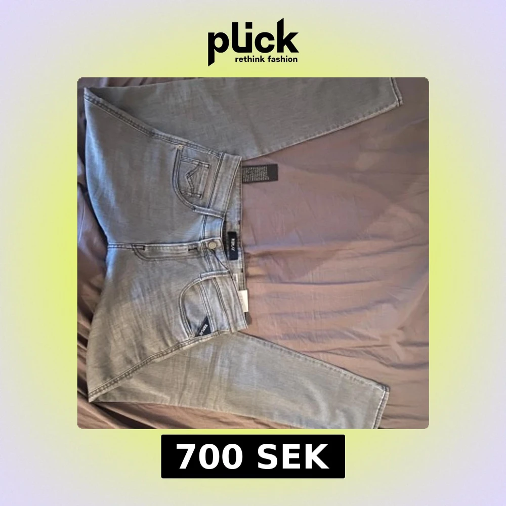 Snygga grå jeans från Replay i modellen Anbass. De har en klassisk femficksdesign med dragkedja och knapp. Perfekta för en stilren look. Storlek W30 L34, Aldrig använda pågrund av fel storlek