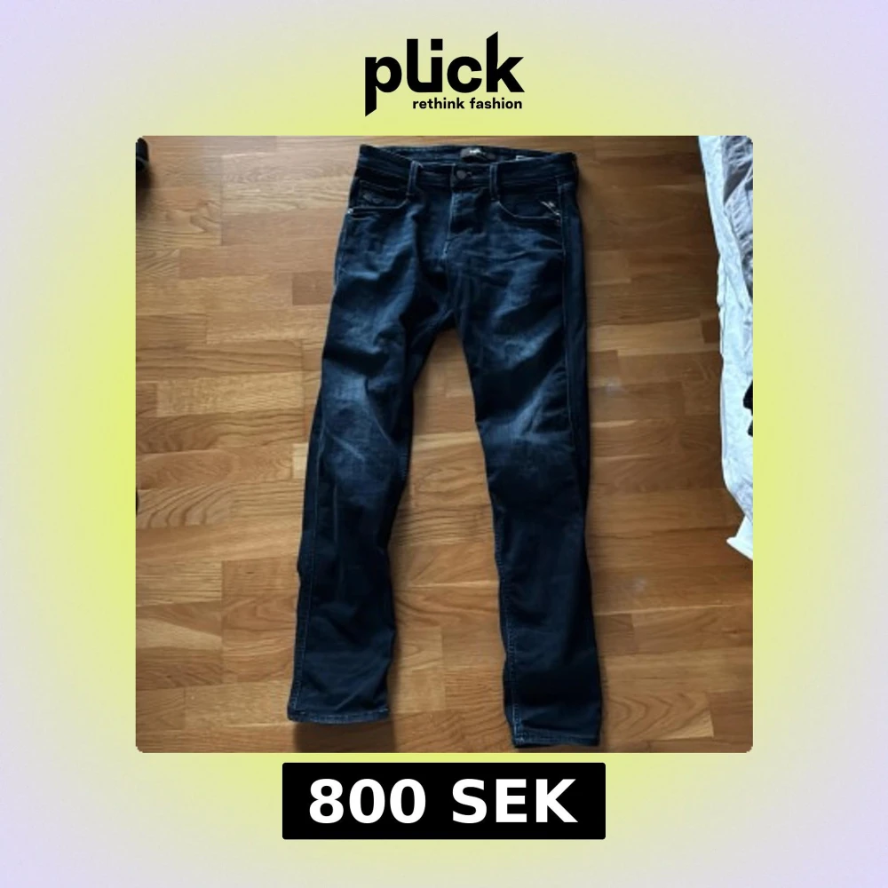 Snygga mörkblå jeansbyxor med en klassisk femficksdesign. Byxorna har en rak passform och är perfekta för en avslappnad stil. De har en knappgylf och bälteshällor för extra funktionalitet. Från Replay