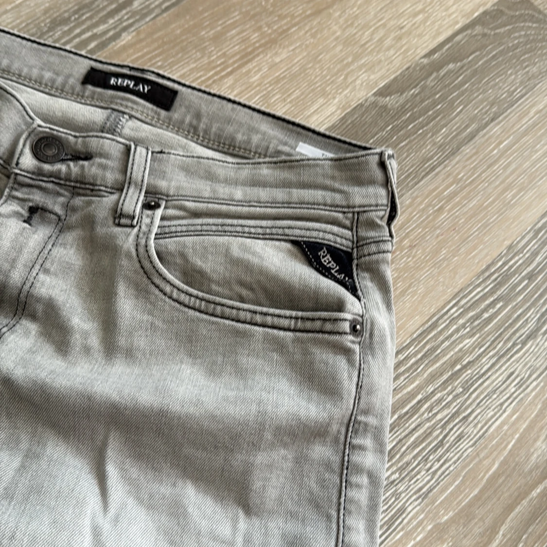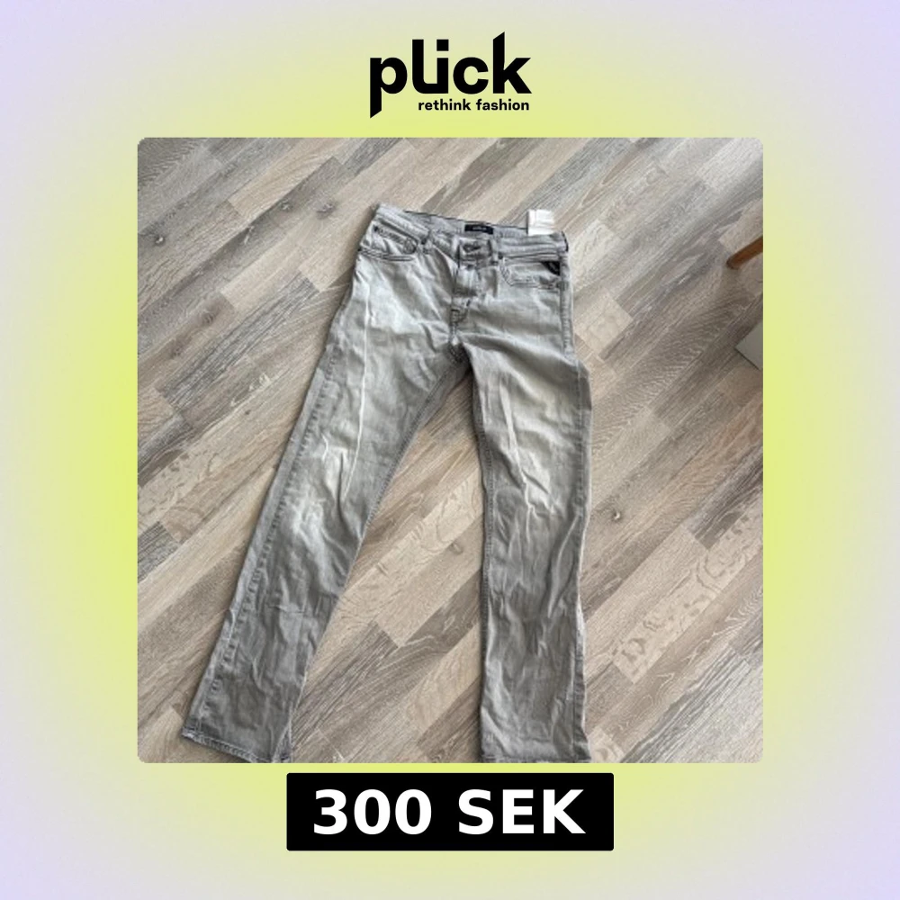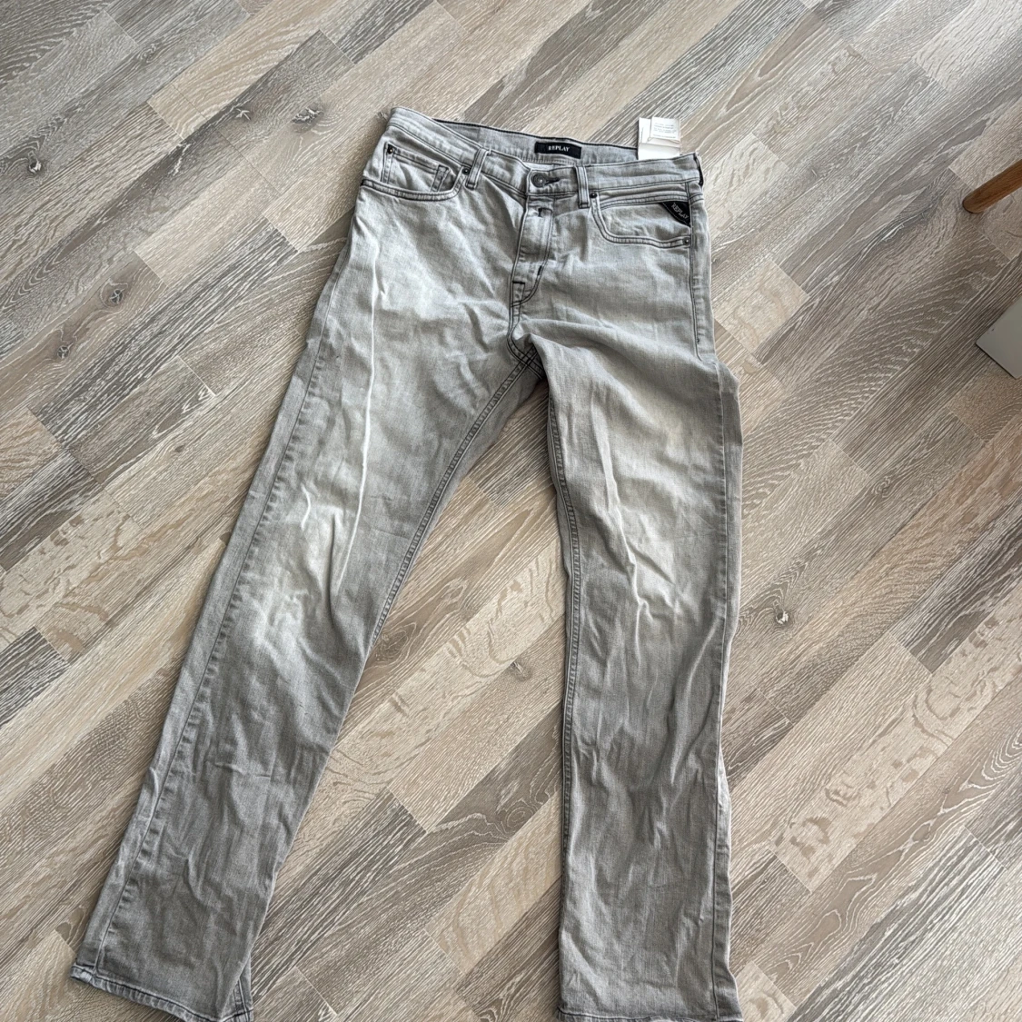 Snygga grå jeans från Replay med klassisk femficksdesign och raka ben. Jeansen har diskreta sömmar och Replay-logga vid fickan. Perfekta för dig som gillar en clean och stilren look. Materialet är mjukt och bekvämt jeans. Storlek 166cm vilket passar dom som har 30W och 32L