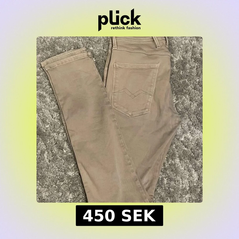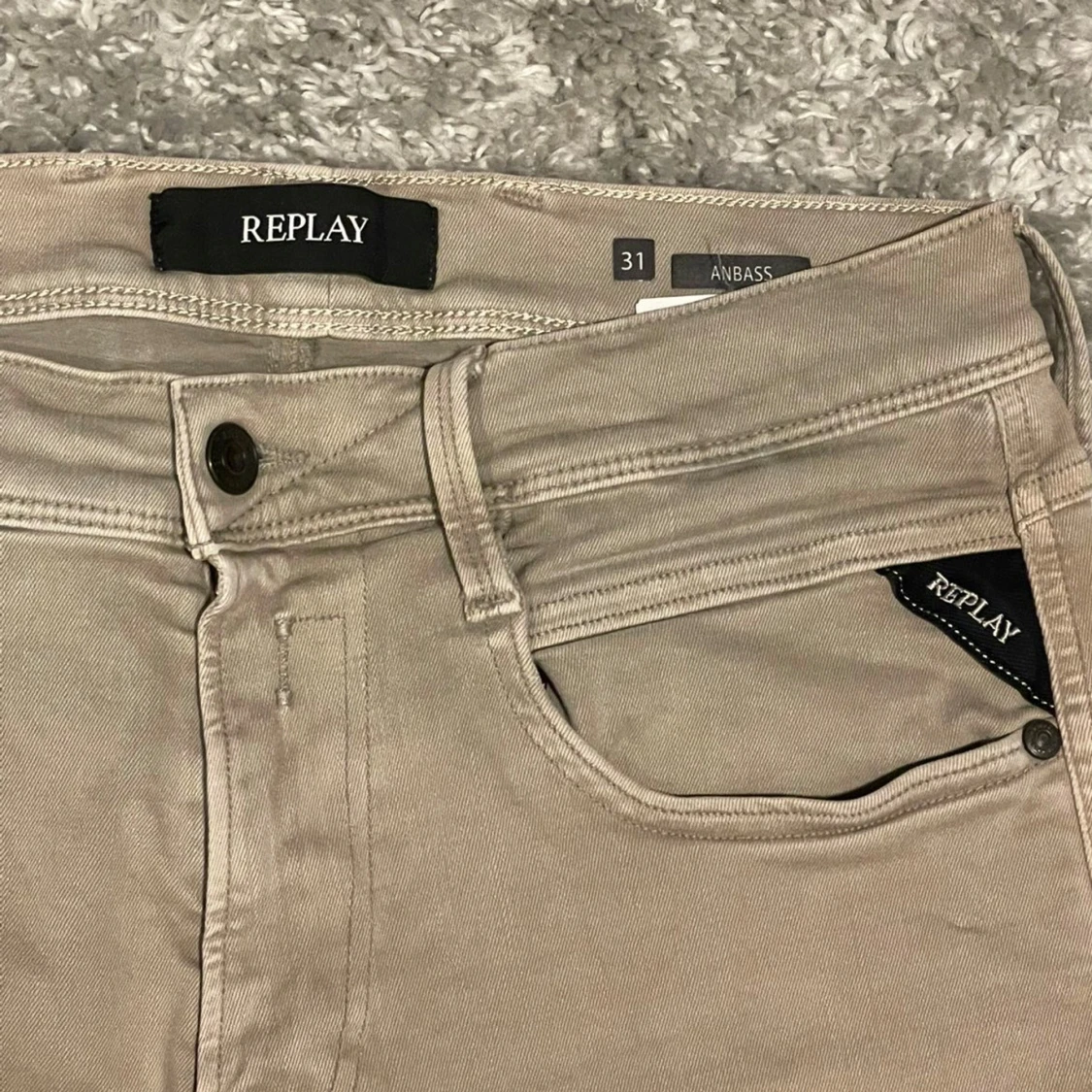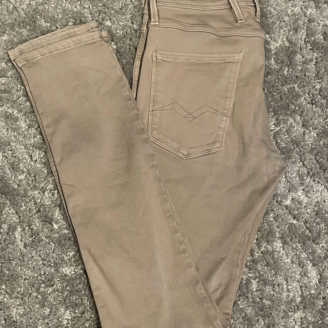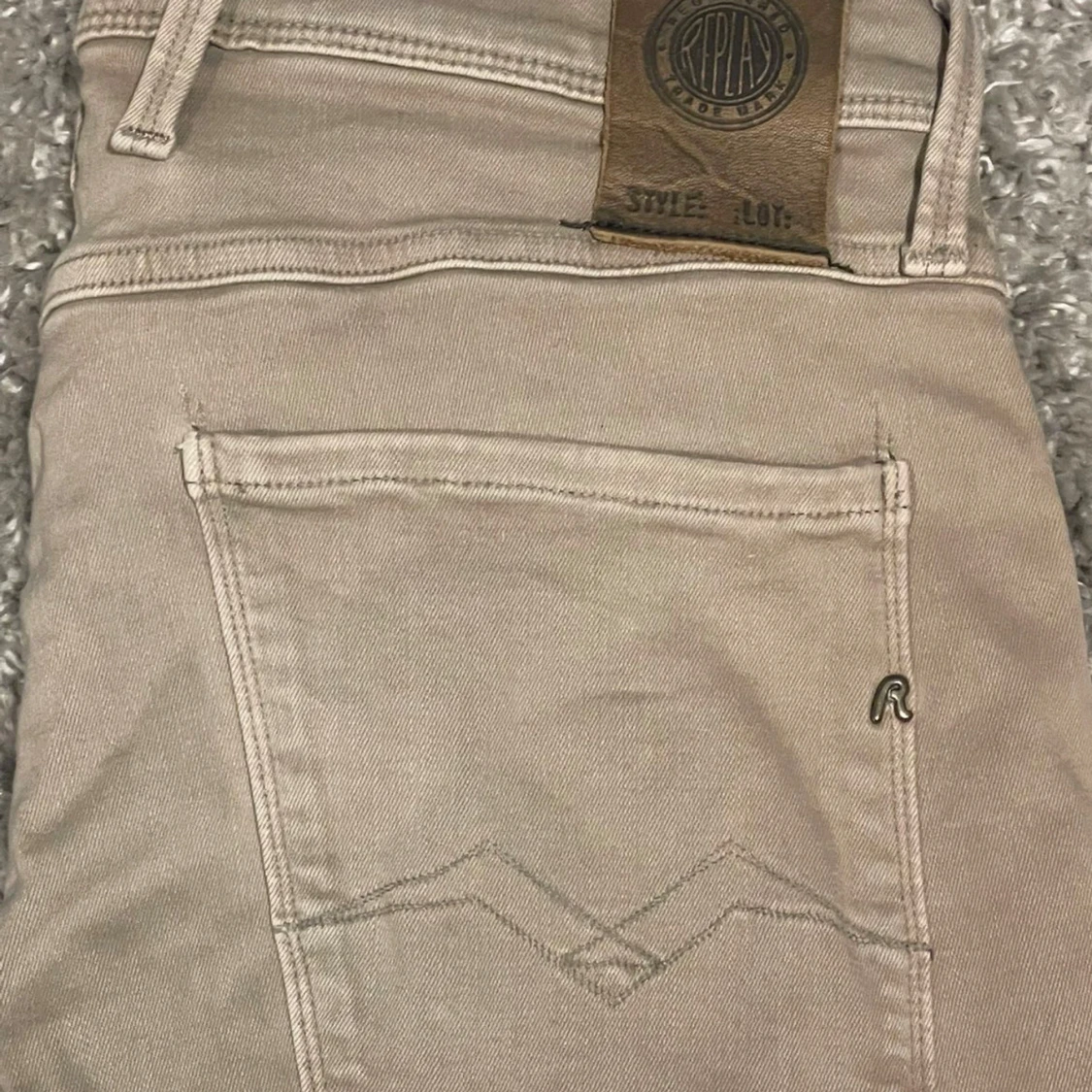 Snygga beige Replay Anbass Hyperflex jeans och diskreta sömdetaljer på bakfickorna. Tillverkade i mjuk bomullsblandning med stretch för extra komfort. Perfekta för en stilren och avslappnad look.