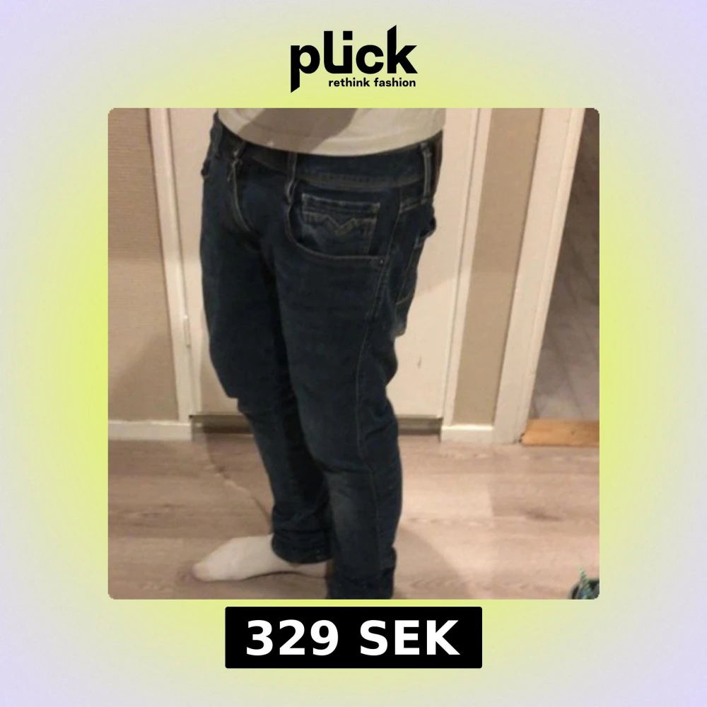 Säljer ett par Replay Anbass jeans i mörkblå tvätt med klassisk femficksdesign och smal passform. Jeansen har snygga detaljer vid fickorna och är tillverkade i stretchigt denim för extra komfort. Perfekt för dig som gillar en modern och stilren look. Ny pris 1299 mitt pris 329