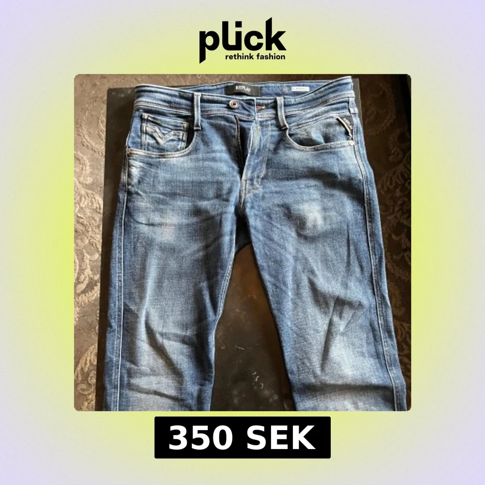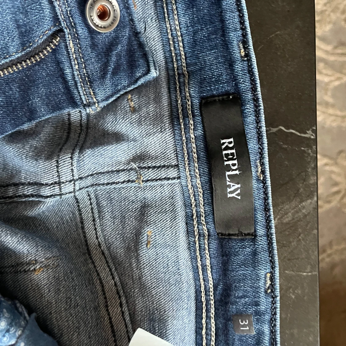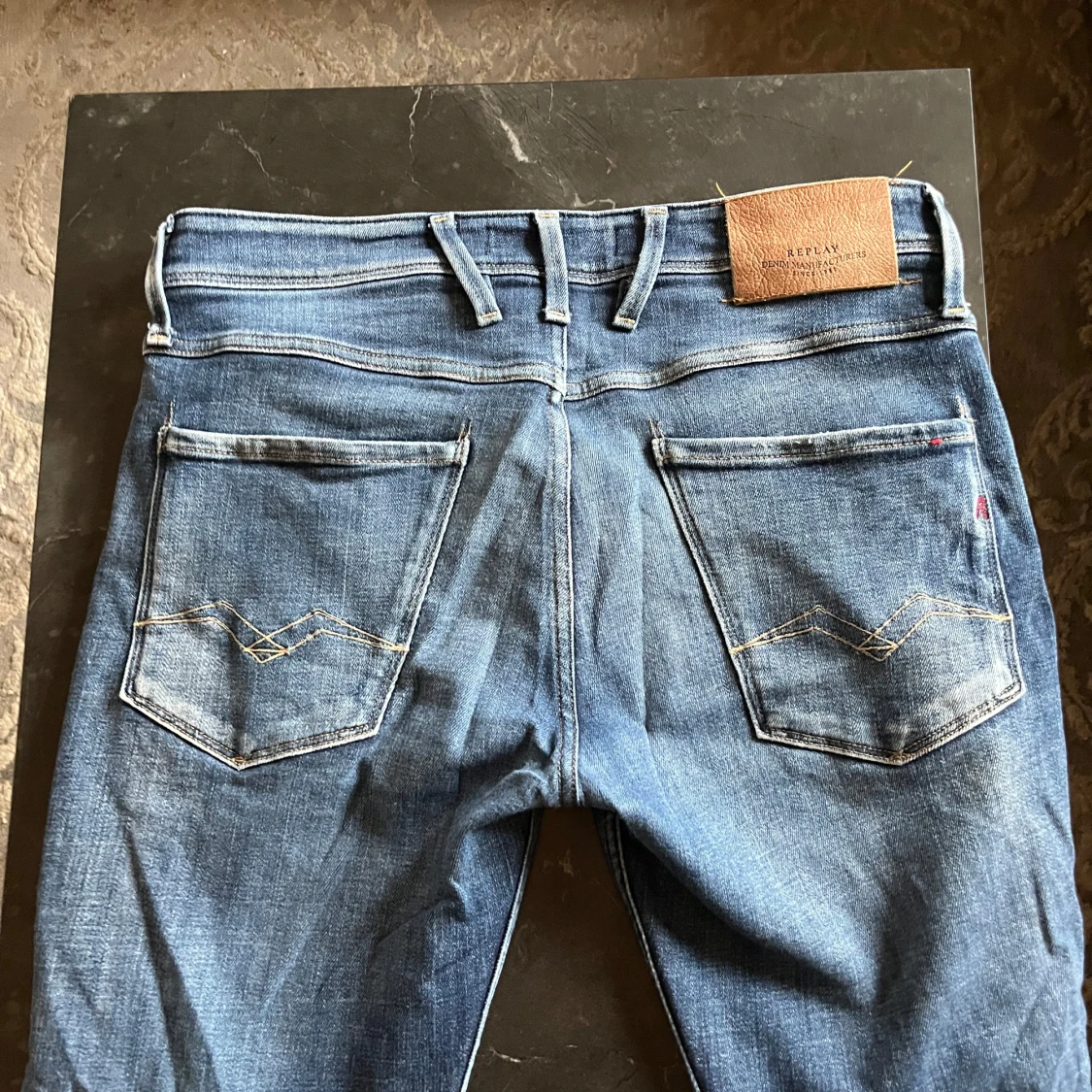 Snygga blå Replay Anbass jeans med klassisk femficksdesign och ljusa slitningar. Jeansen har normal passform, raka ben och detaljerade bakfickor med kontrastsömmar. Perfekta för dig som gillar en avslappnad men stilren look.