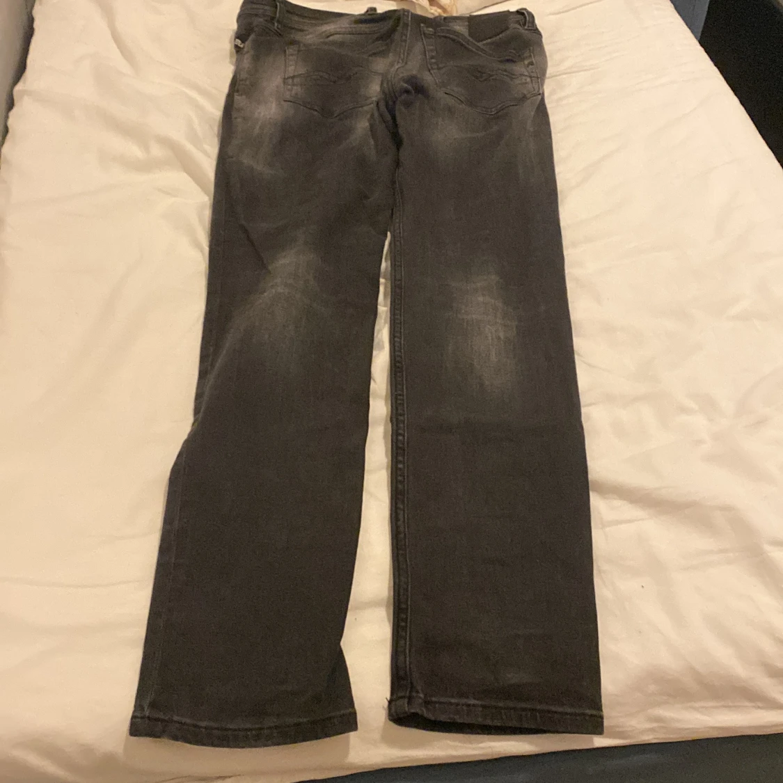Säljer ett par snygga svarta jeans från Replay. De har en klassisk straight fit och är i bra skick. Perfekta för både vardag och fest! 🖤 köpt för 6 månader sen men använts fåtal gånger för dem va för störa me växte så nu dem är för små tvättas max 5 gånger och är i bra skick inga skadar,smuts elle nåt sånt. (W31 L 32) pris kan sänkas. Ni betalar för frakt