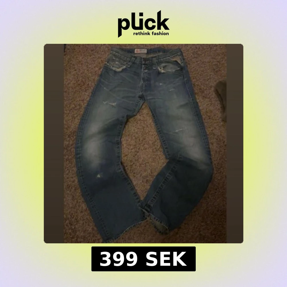 Replay jeans i stl 31/32 med slitningar och snygga detaljer lite sönder längst ner och i fickorna men inget som påverkar.M en annars i bra skick. Hör av er vid funderingar eller lägg prisförslag