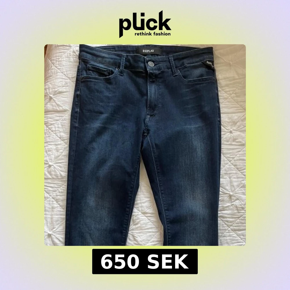 Snygga mörkblå jeans från Replay med klassisk design och diskret tvättade detaljer. Jeansen har slim passform och raka ben, i stretchigt jeansmaterial för extra komfort. Är i strl W31 L30, I nyskick