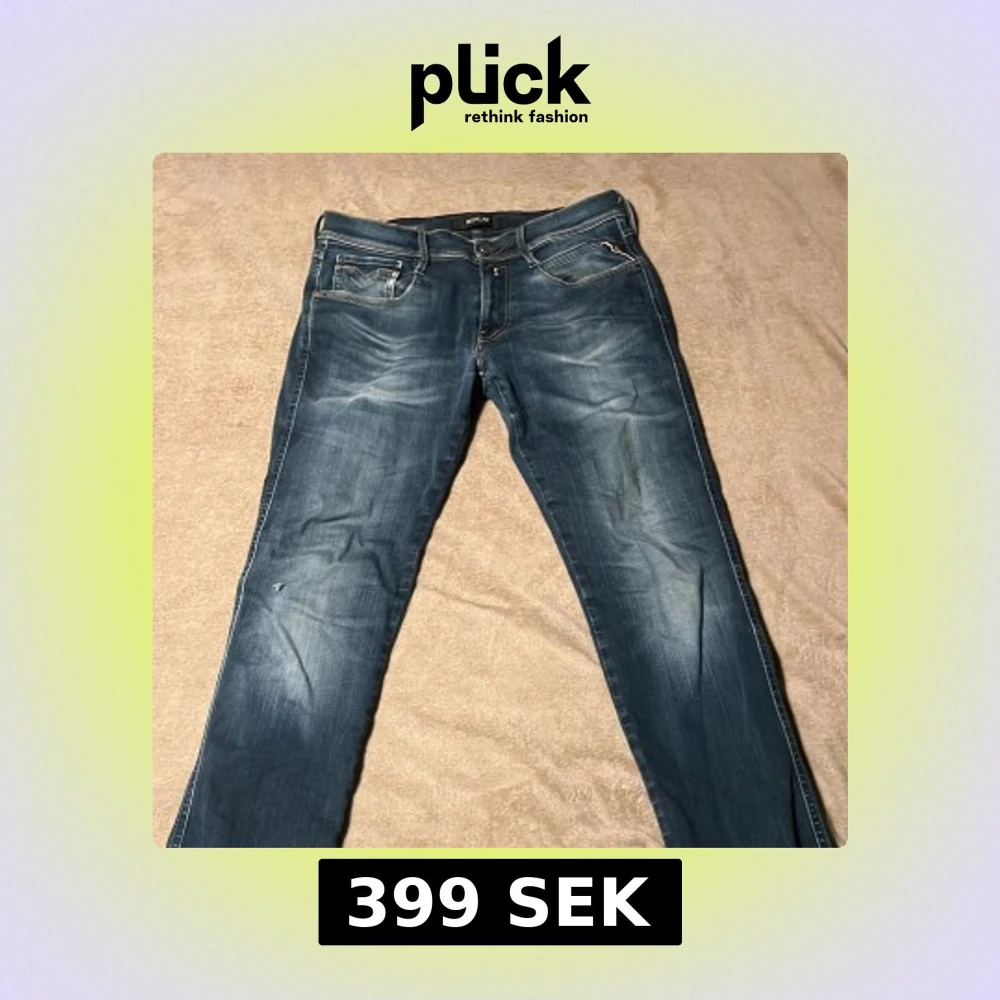 Säljer ett par Replay Hyperflex jeans i blå tvätt med snygga slitningar och kontrastsömmar. Modellen har klassisk femficksdesign, raka ben och normal passform. Materialet är stretchigt jeans för extra komfort. Perfekt för dig som gillar stilrena och bekväma jeans. Litet hål vid högra knät.