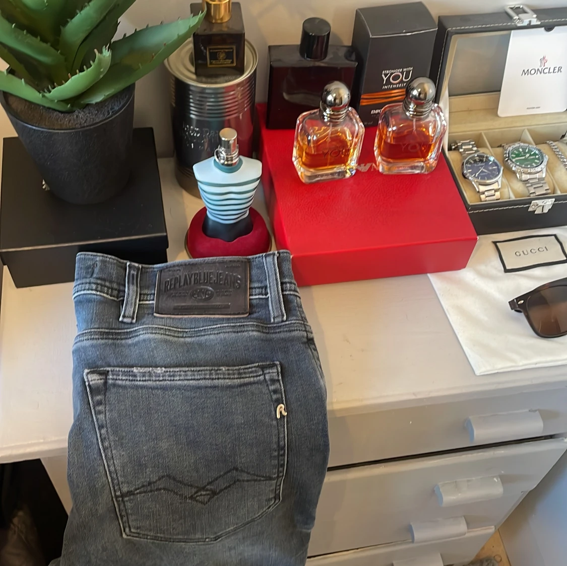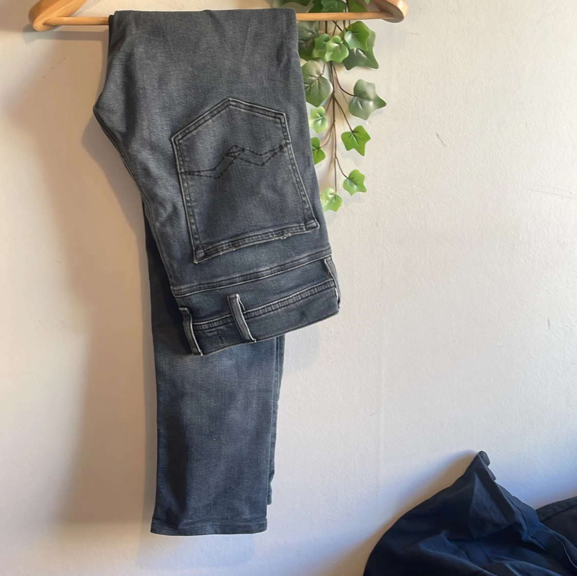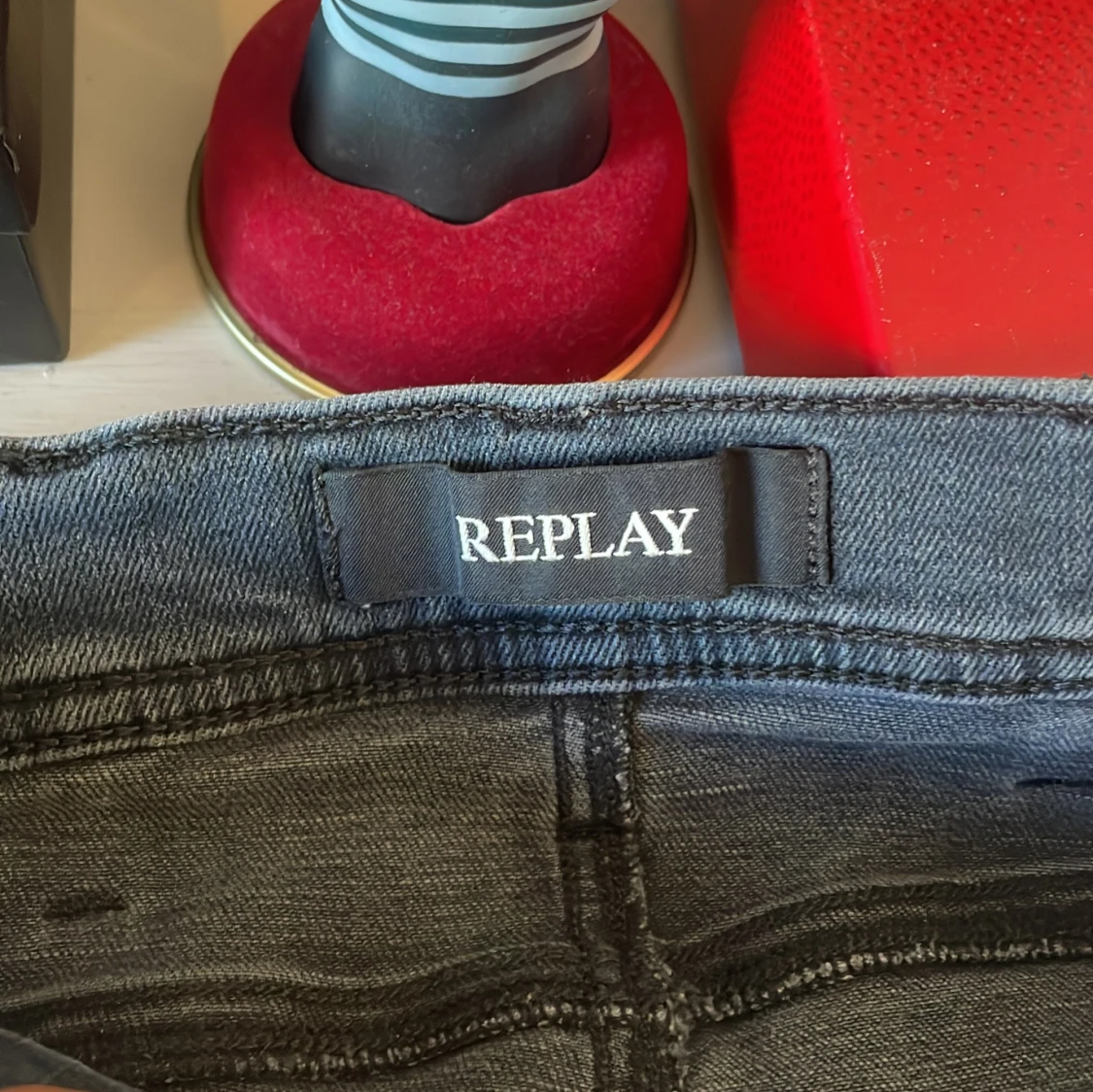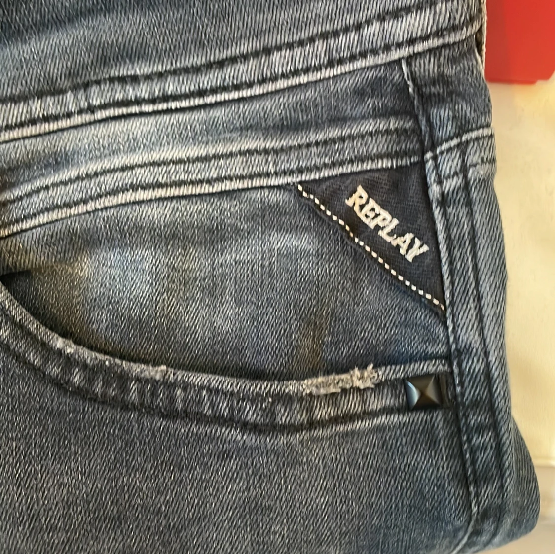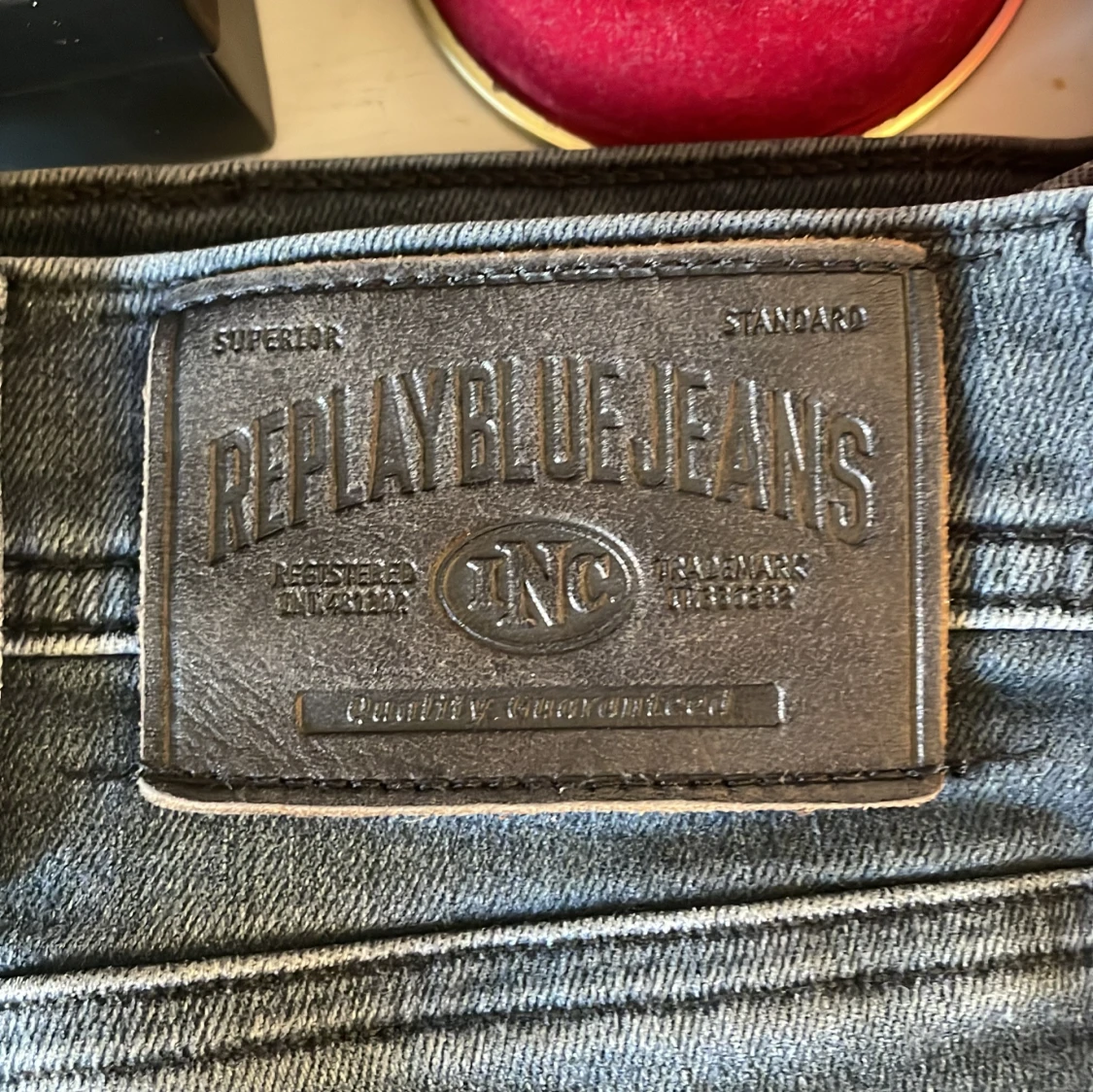 Säljer ett par Replay Blue Jeans i mörkblå tvättad denim med klassiska femficksdetaljer och snygga kontrastsömmar. Byxorna har Replay-logga på bakfickan och läderpatch i midjan. Perfekta för dig som gillar stilrena jeans med en modern touch.