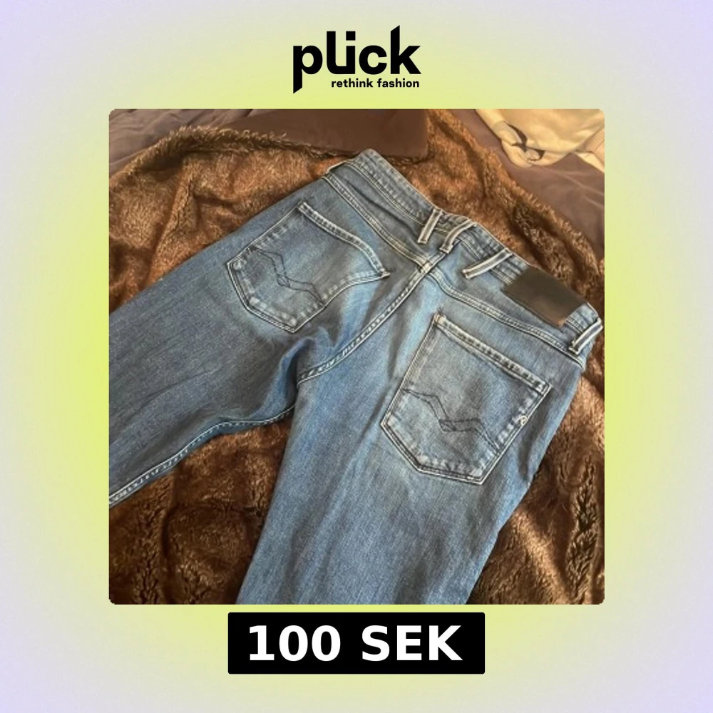 Säljer ett par Replay Anbass jeans i STORLEK w31 L34 passar L33 bra också iklassisk blå tvätt med snygga slitningar. Modellen har slim fit och raka ben, fem fickor och detaljerade sömmar på bakfickorna. Perfekt för dig som gillar stilrena jeans med modern passform.