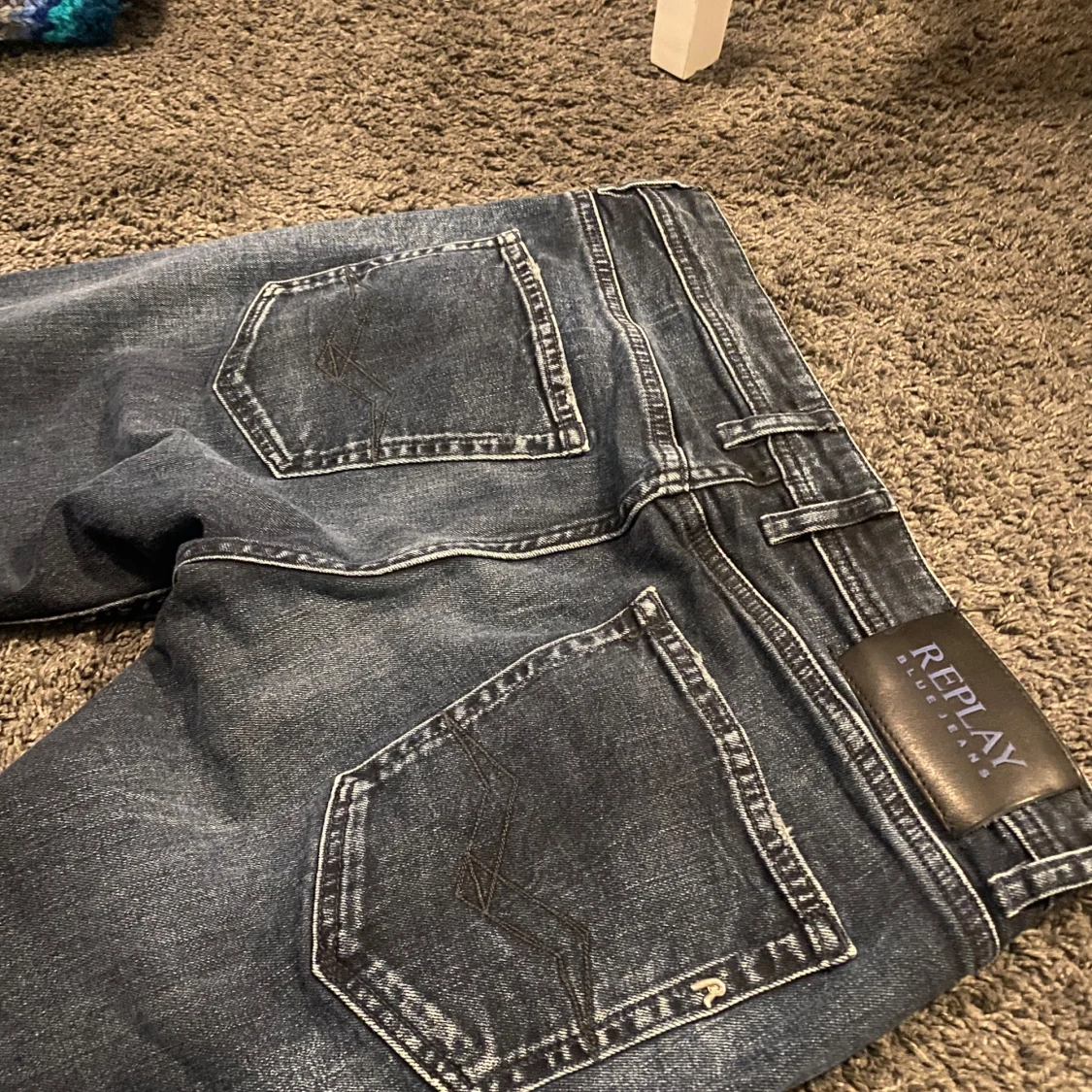 Säljer ett par riktigt snygga Replay Grover jeans i mörkblå tvätt med klassisk femficksdesign och Replay-logga på fickan. Jeansen har raka ben och normal passform. W31 & L30. Skick 9,5/10, bara provats. Jag kan gå ner i pris vid snabbaffär! Skriv om du har frågor.