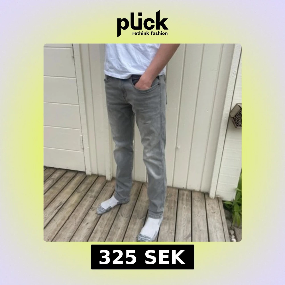 Säljer ett par grå jeansbyxor från Replay med raka ben och klassisk femficksdesign. Byxorna har diskreta sömdetaljer på bakfickorna och normal passform. Perfekta för en stilren och avslappnad look.