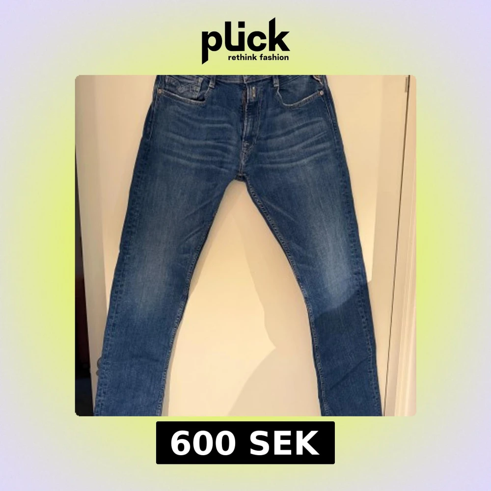 Snygga blå jeans från Replay, modell Rocco. Jeansen har normal midja och är tillverkade i mjukt denimtyg med stretch för extra komfort. Perfekta för en avslappnad och trendig look. Storlek 32/32