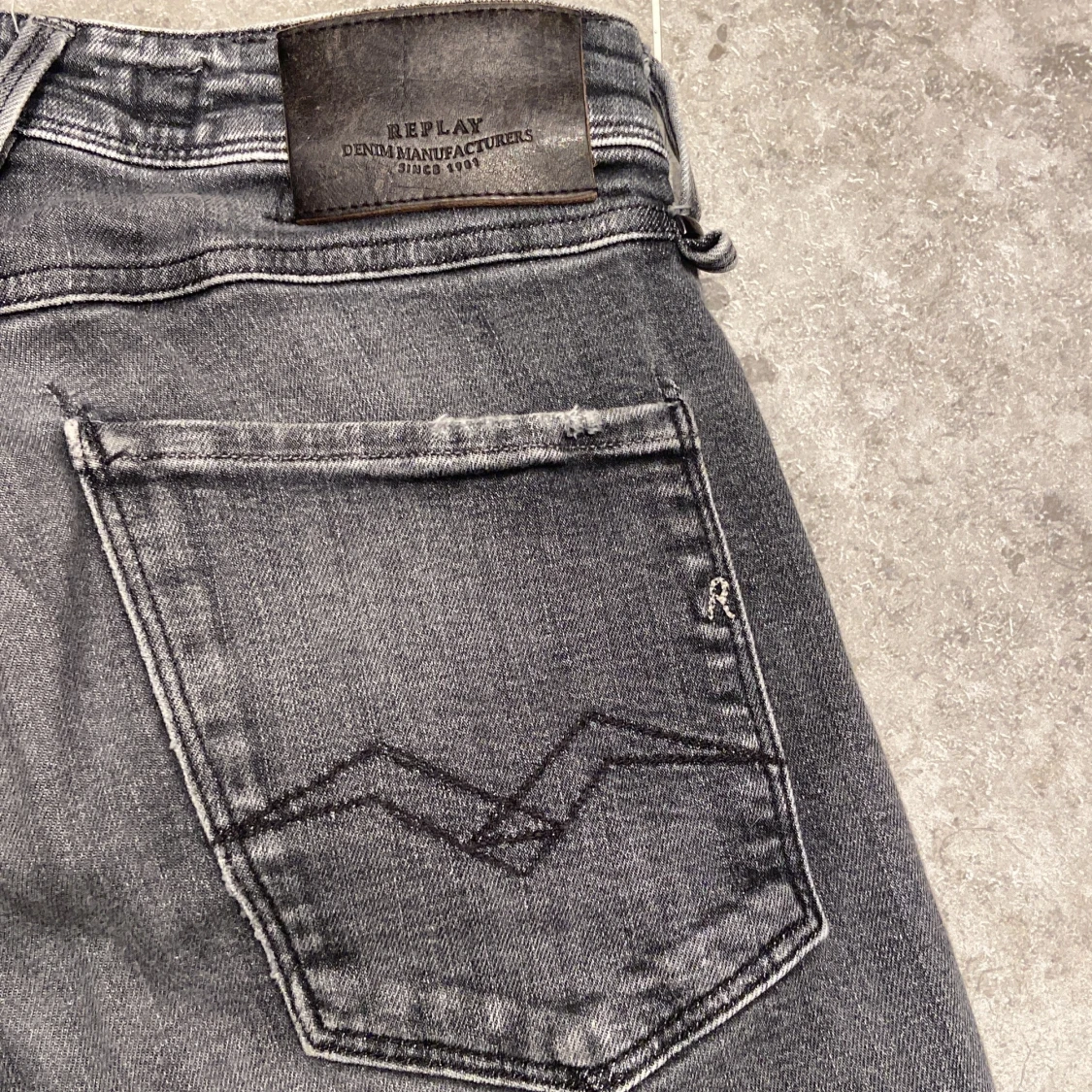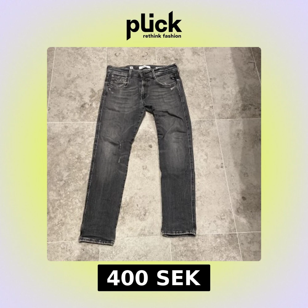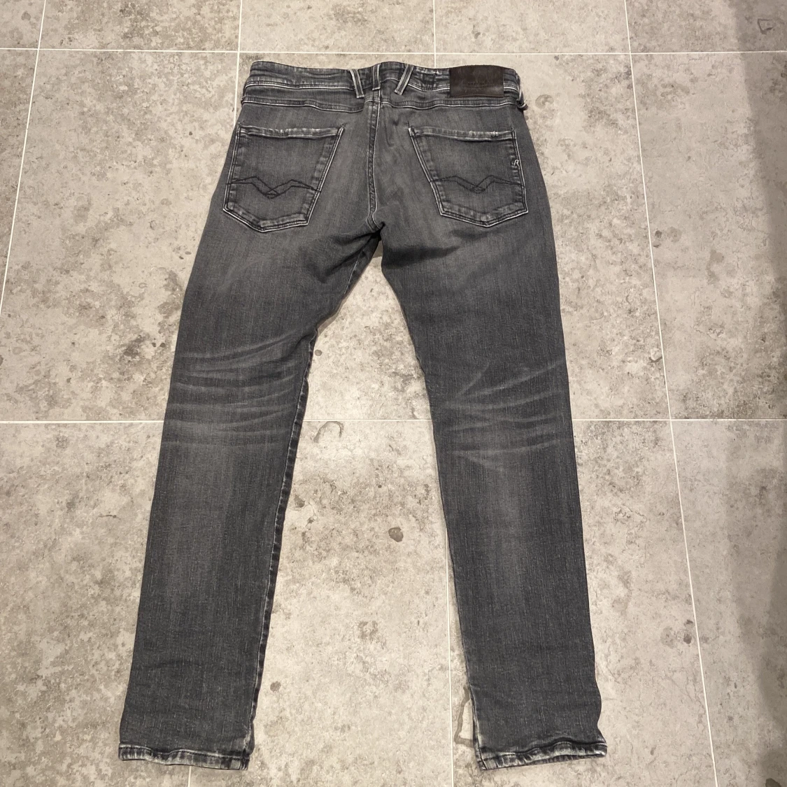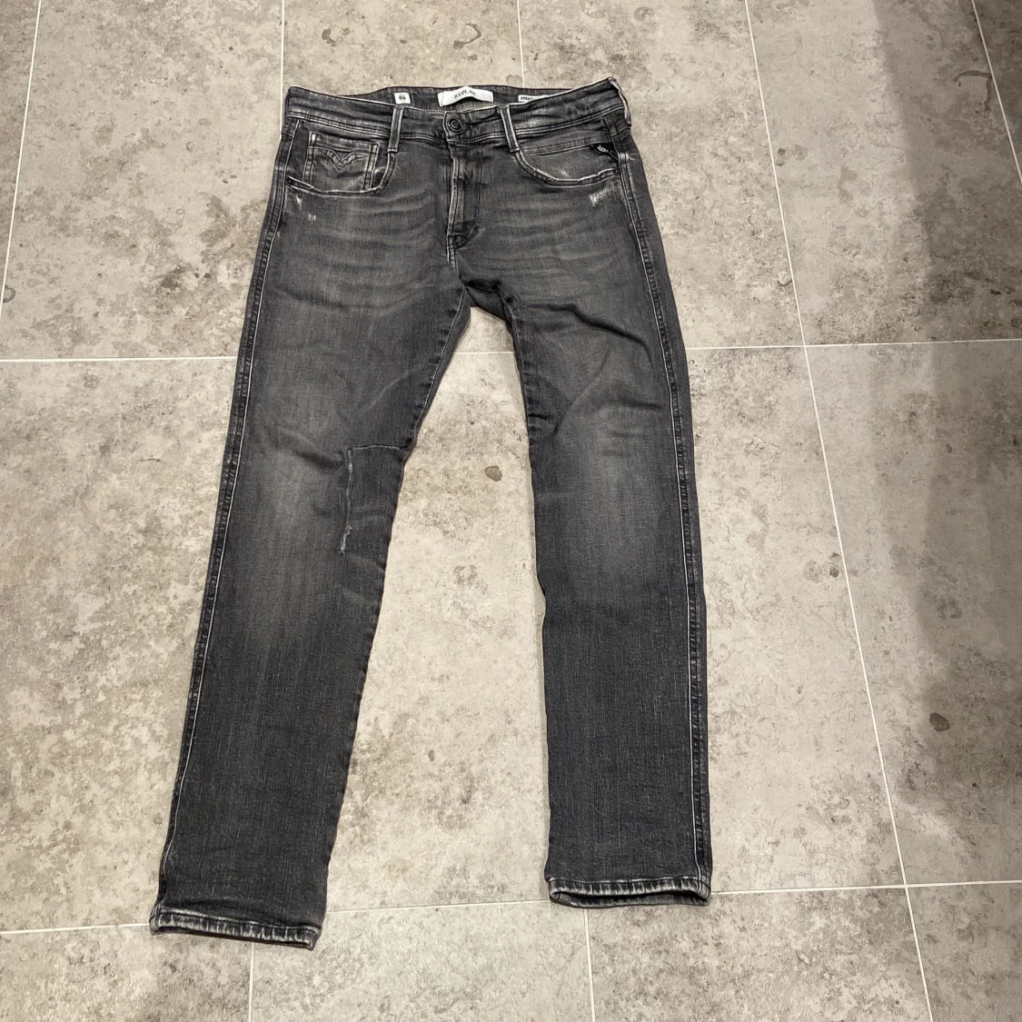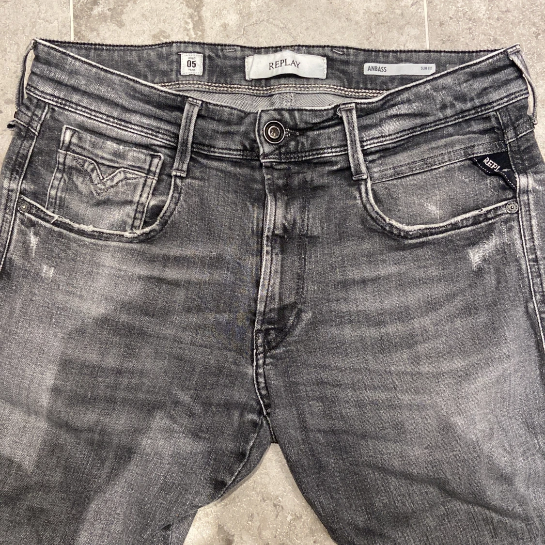 Säljer ett par Replay Anbass jeans i grå tvätt med snyggt slitna detaljer. Jeansen hat en slim passform. Materialet är mjukt och stretchigt jeans. Blivit en defekt på höger knä men inget märk värdigt när den väl är på. Storlek 32,30, pris kan ändras vid köp!