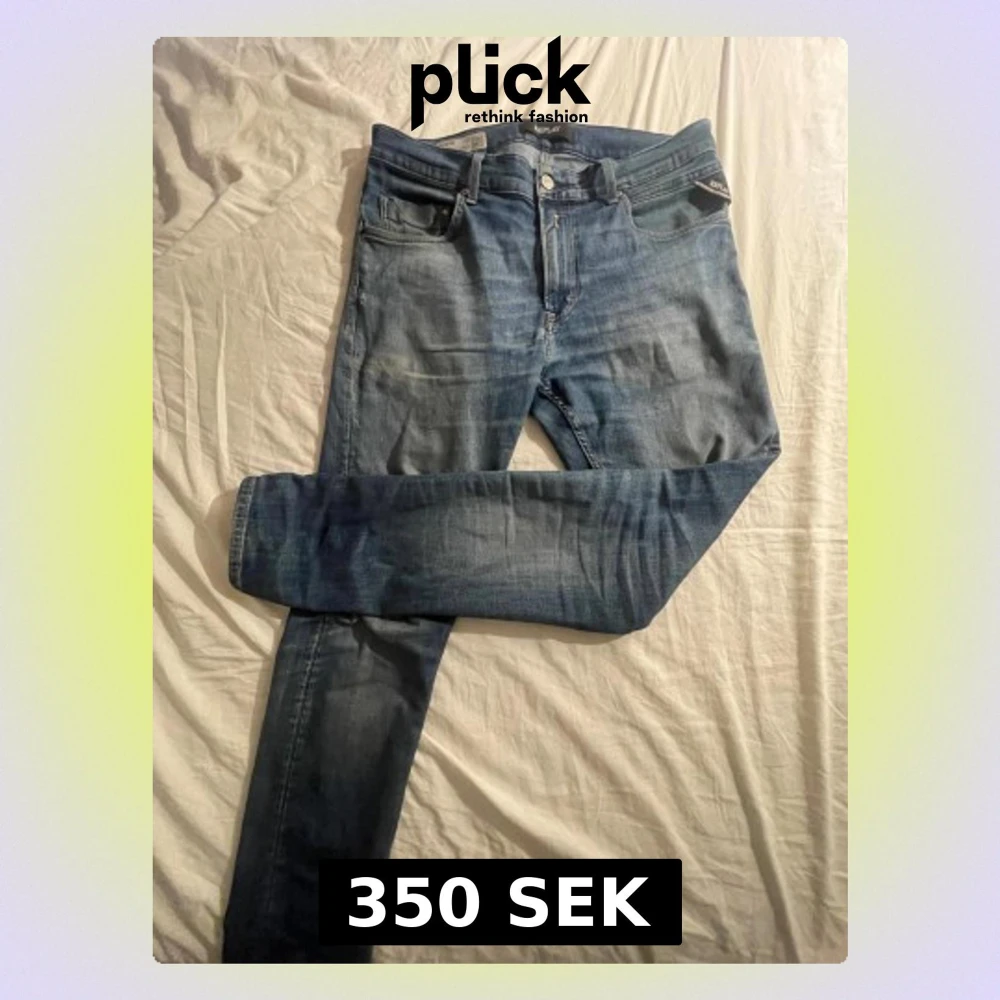Snygga blå jeans från Replay med klassisk femficksdesign och läderpatch bak i midjan. Jeansen har en rak passform och är tillverkade i mjukt denimtyg. Perfekt för dig som gillar en tidlös och avslappnad stil.