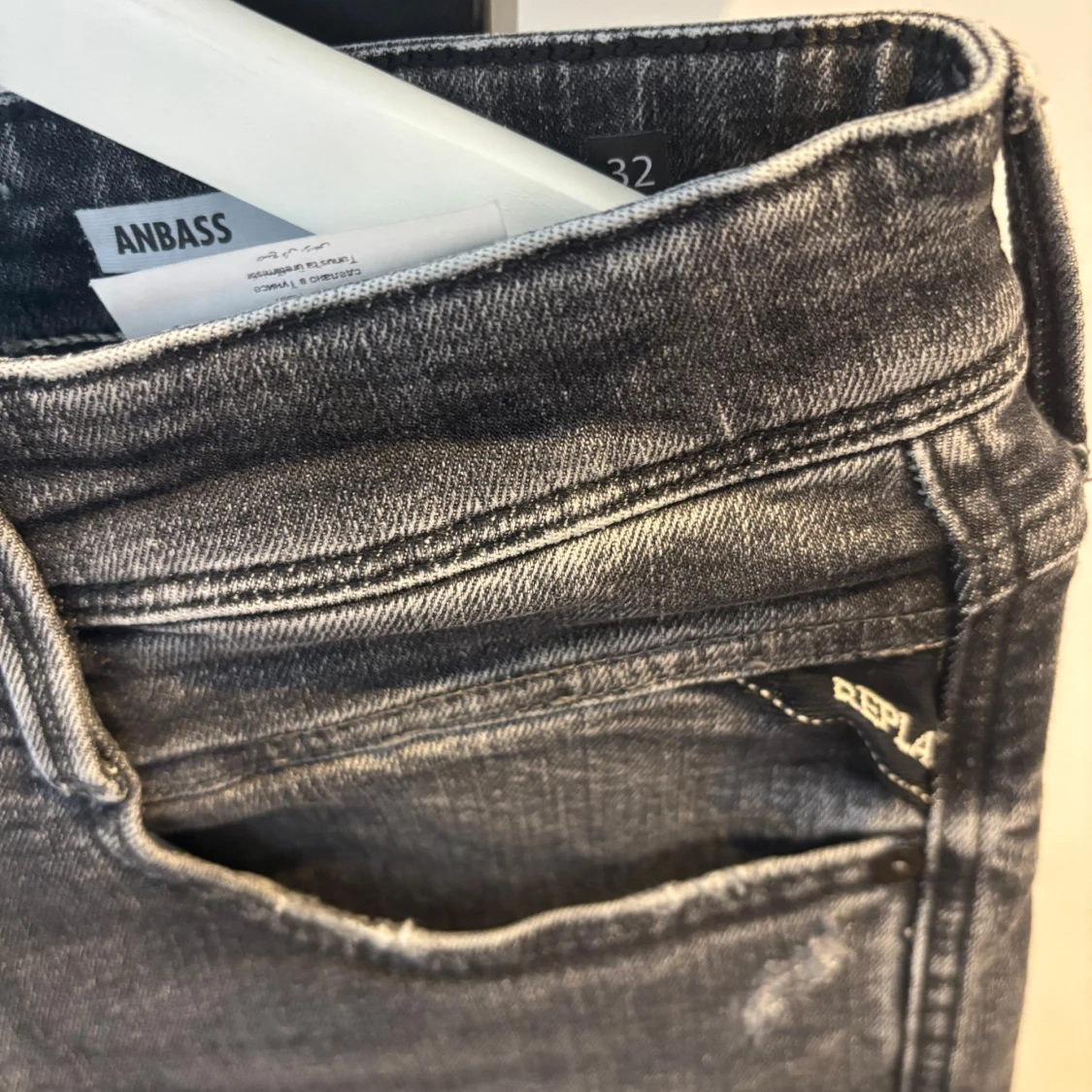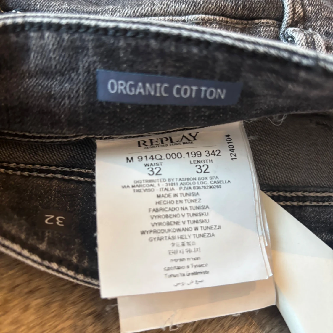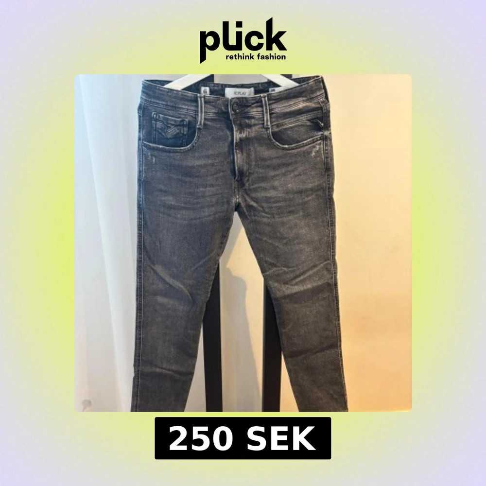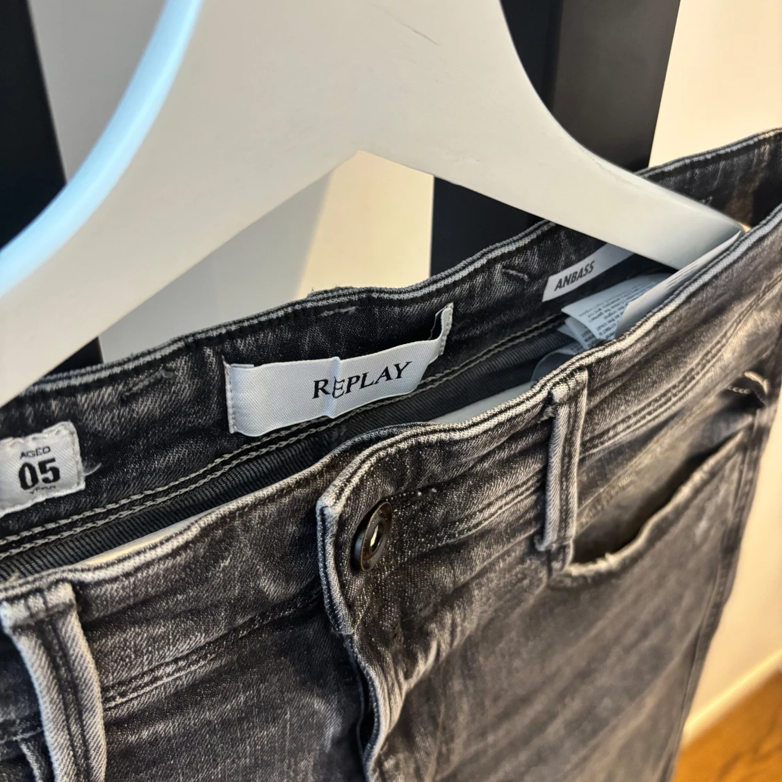 Säljer ett par Replay Anbass jeans i svart tvätt med klassisk femficksdesign. Jeansen har normal passform och är tillverkade i ekologisk bomull. Perfekta för dig som gillar stilrena och bekväma jeans med snygg faded effekt.