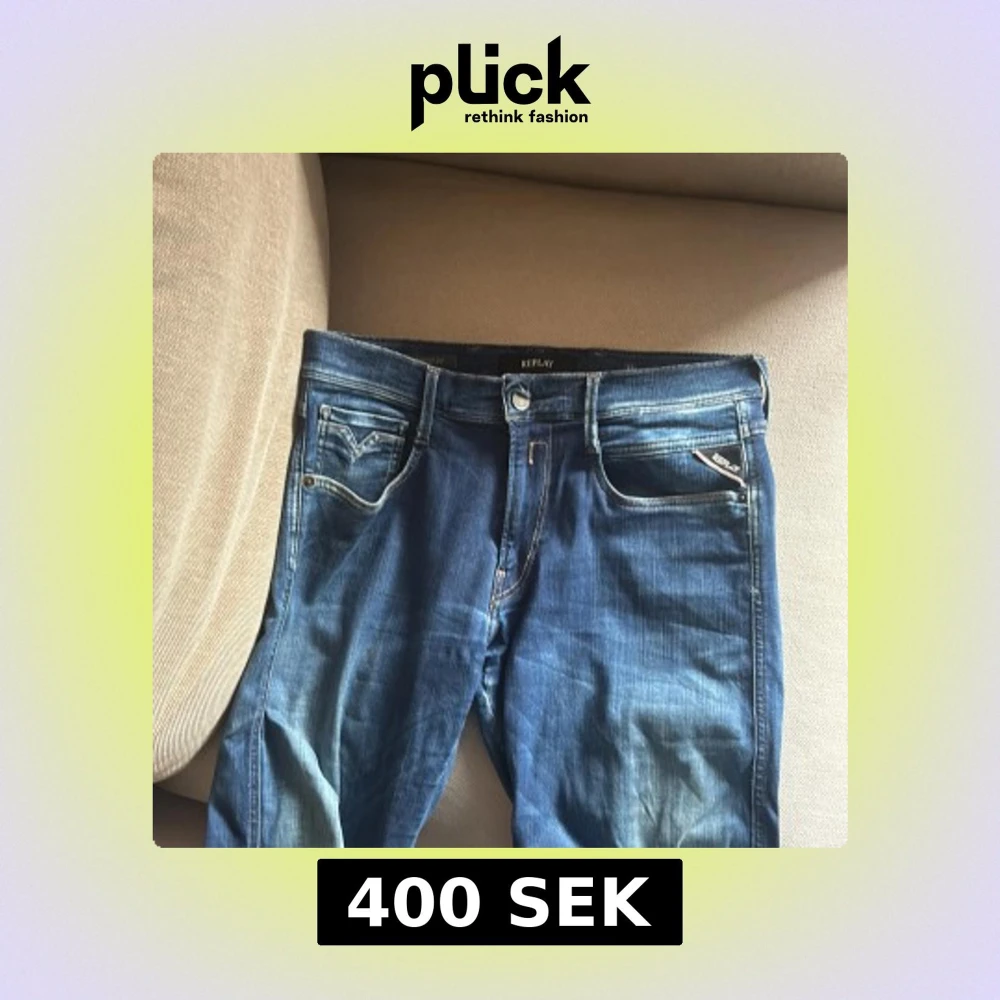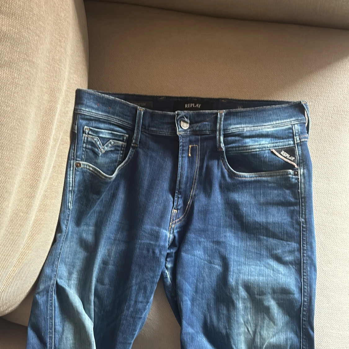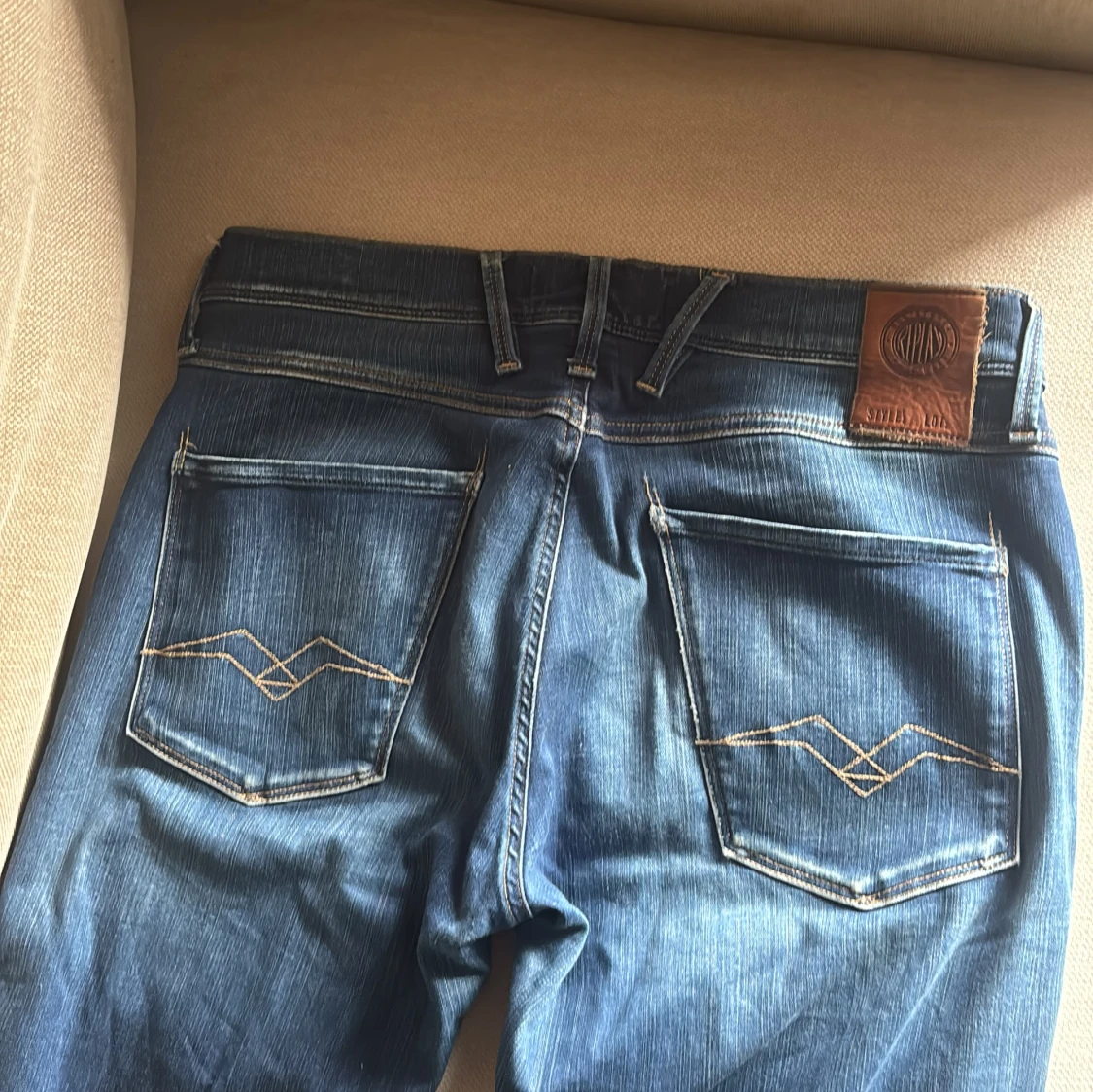 Snygga blå jeans från Replay med klassisk femficksdesign och ljusa slitningar. Jeansen har raka ben, normal passform och detaljerade sömmar på bakfickorna. Tillverkade i mjukt jeanstyg med en cool tvättad look och läderpatch bak i midjan.