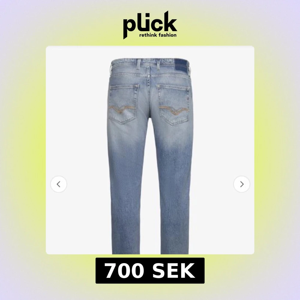 Säljer ett par ljusblå jeans från Replay med klassisk femficksdesign och snygga slitningar. Jeansen har raka ben, normal passform och subtila detaljer på bakfickorna. Perfekta för en avslappnad och trendig look.