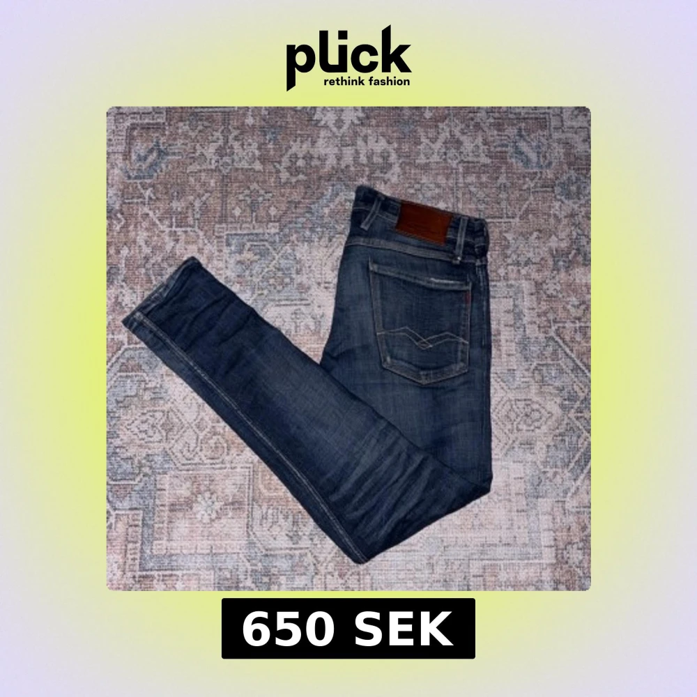 Mörkblå Replay Anbass jeans med snygg tvätt och klassiska kontrastsömmar. Modellen har fem fickor, läderpatch bak och smal passform. Jeansen är tillverkade i stretchig bomullsdenim för extra komfort och har diskreta slitningar på låren.