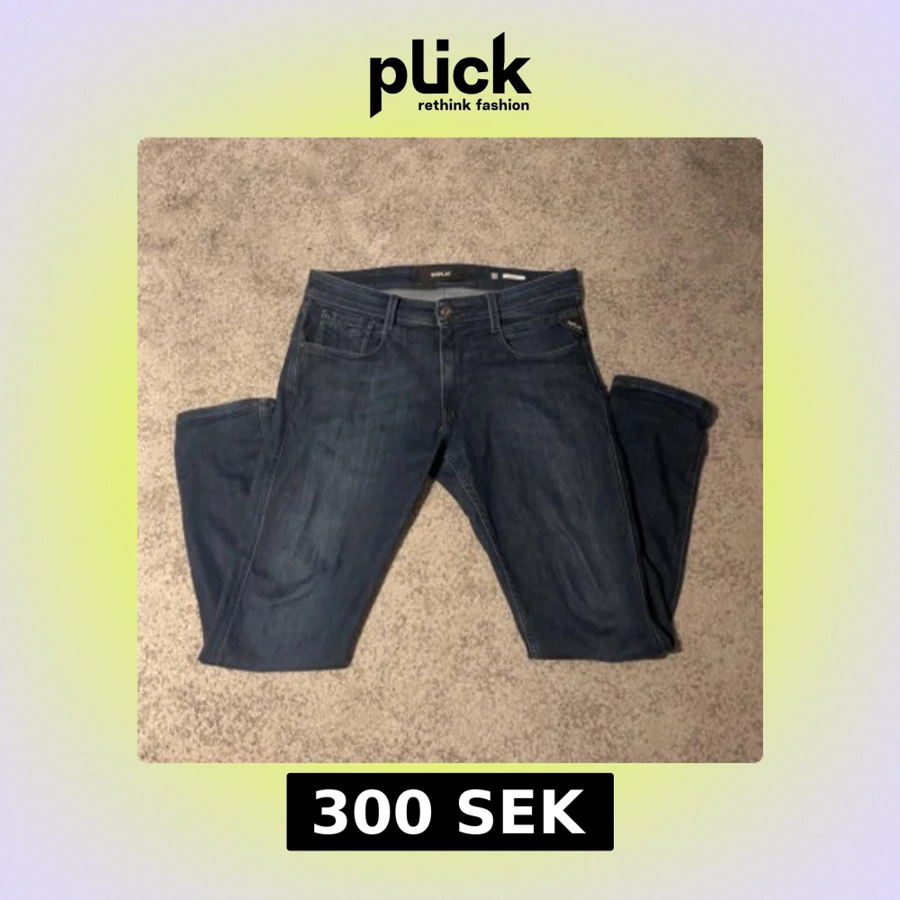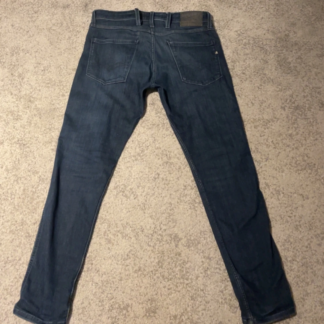 Snygga mörkblå jeans från Replay i klassisk femficksmodell. Jeansen har raka ben och normal passform, med diskreta slitningar för en cool look. Tillverkade i mjuk denim med dragkedjegylf och Replay-logga på fickan.