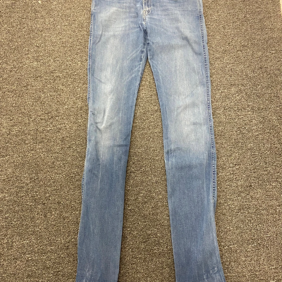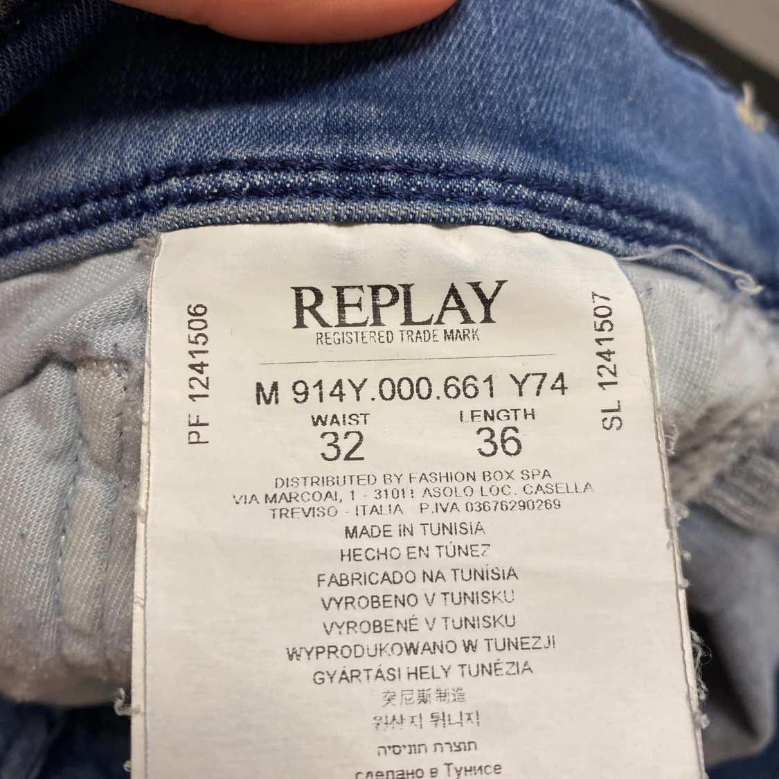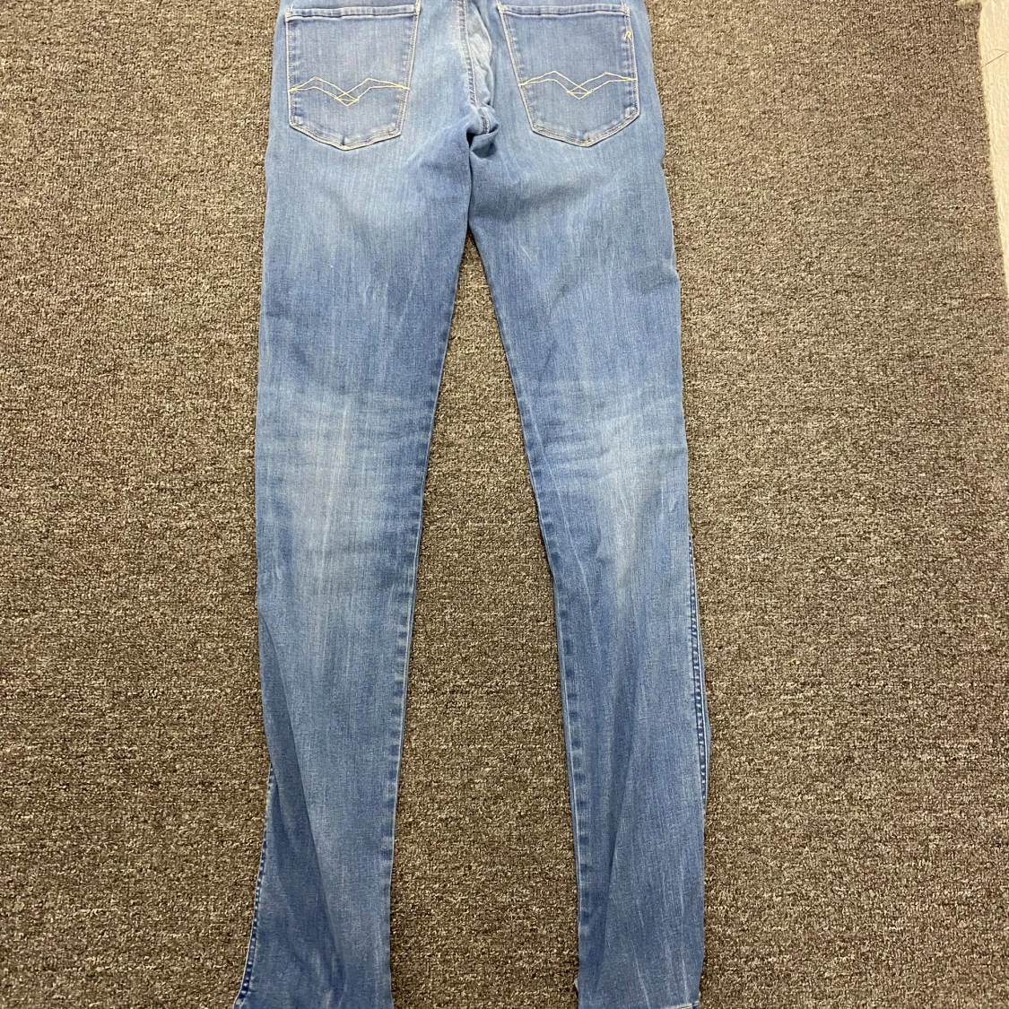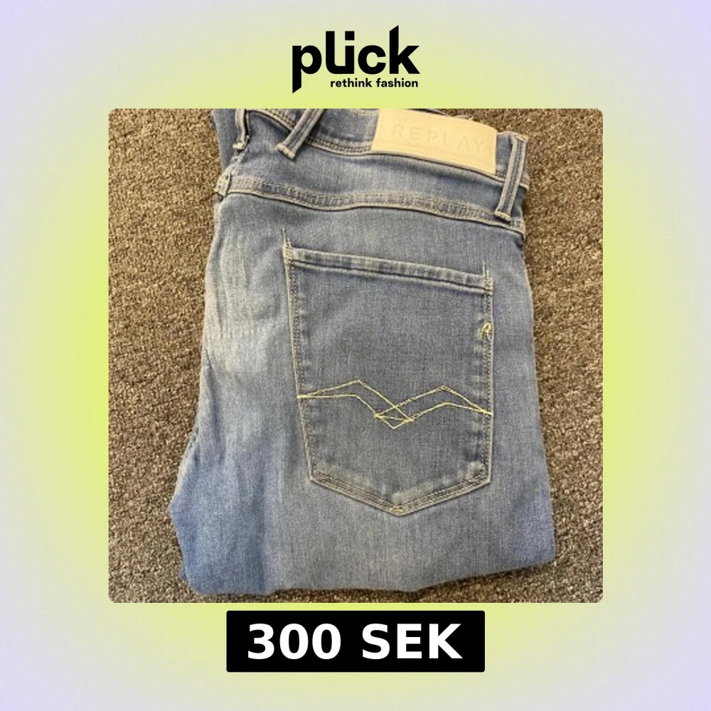 Säljer ett par ljusblå jeans från Replay med klassisk rak passform. Jeansen har snygga kontrastsömmar på bakfickorna och ett Replay-märke i beige på linningen. Tillverkade i mjukt denimtyg som sitter skönt hela dagen.