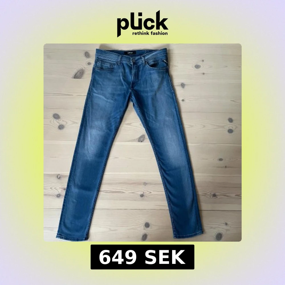 Säljer nu ett par riktigt feta replay jondrill jeans. Passformen Jondrill sitter som slim fitFärg blå, storleken är W32 och längden vet jag inte riktigt eftersom lappen där det står är avklippt. Skriv om du vill veta längd i cm. Om du har några fler funderingar svarar jag gärna! ❇️