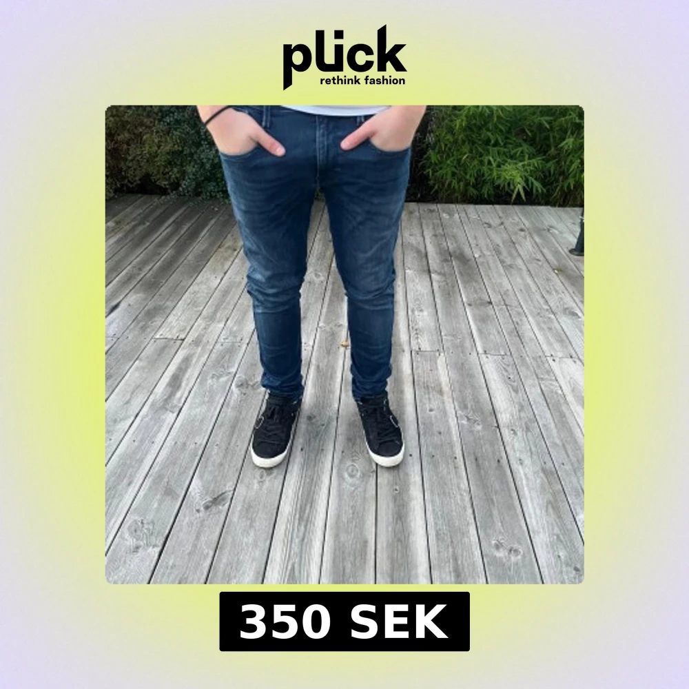 Snygga mörkblå Replay jeans. De har inga defekter. Modellen är 174. W34 L32 men passar som W32 L32. Kontakta gärna vid funderingar!