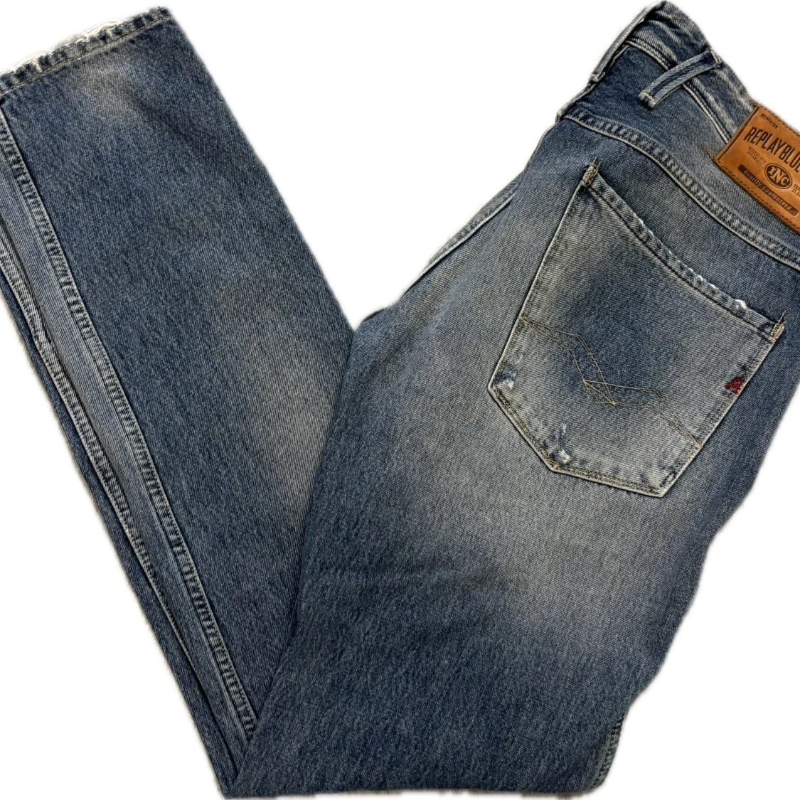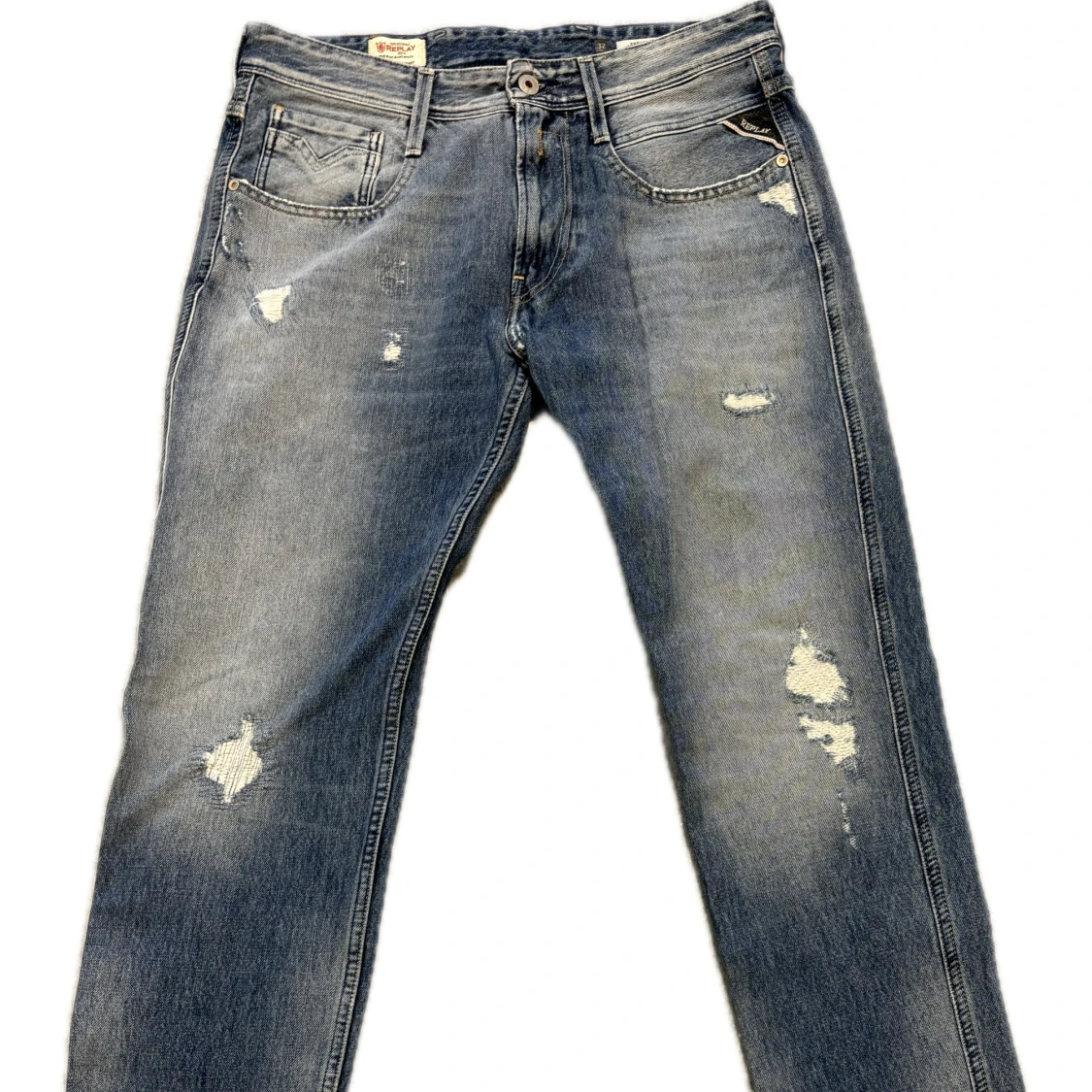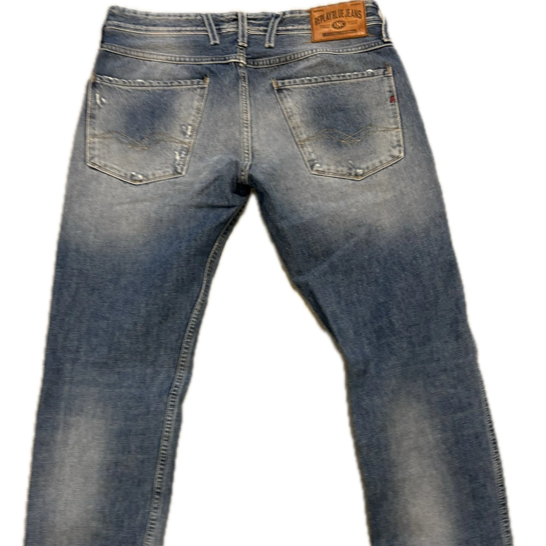 Blå jeans från Replay med snygga slitningar och klassisk femficksdesign. Jeansen har rak passform och normal midja, tillverkade i robust denim. Perfekta för dig som gillar en avslappnad och trendig look.
