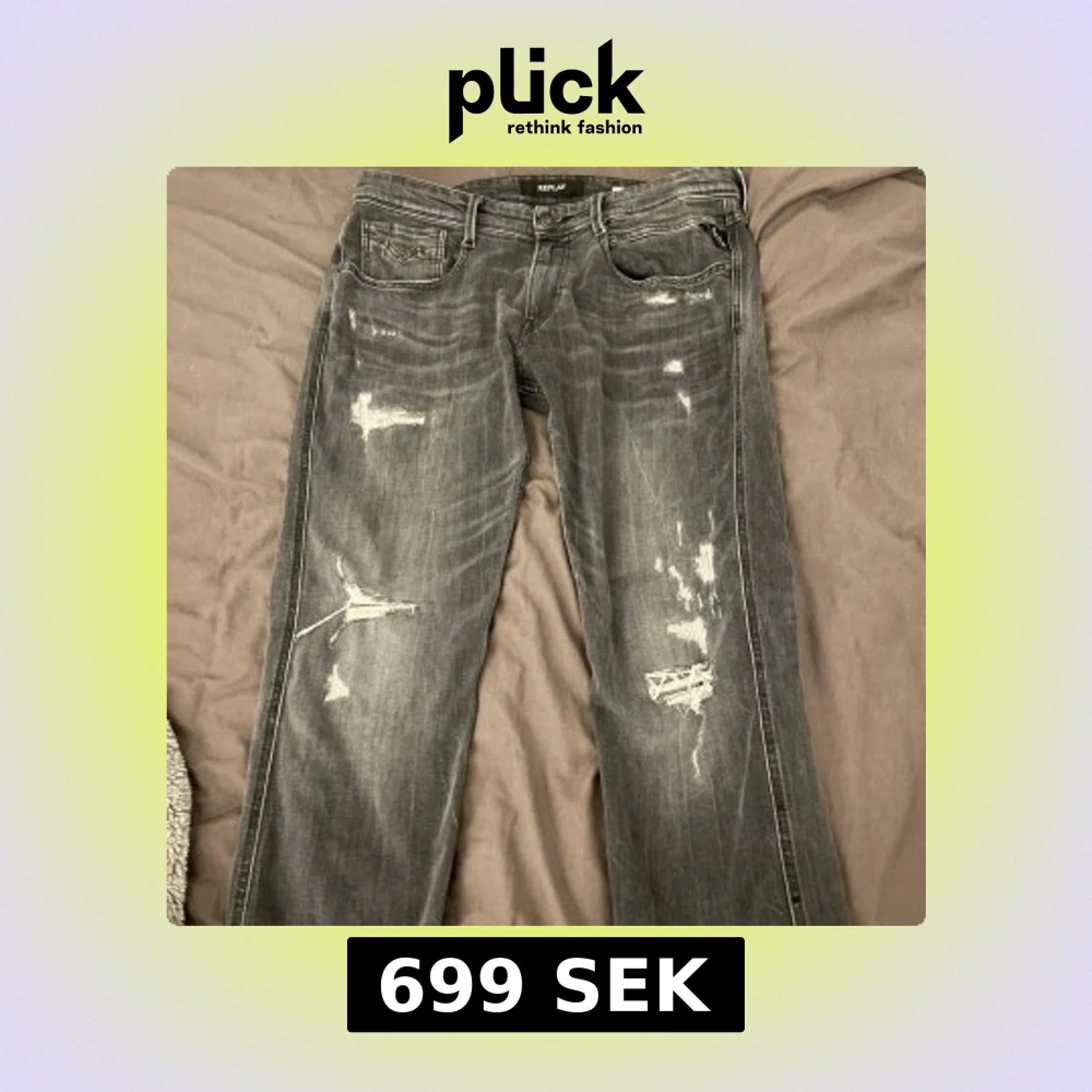 Säljer ett par tvär feta mörk gråa replay jeans med slitning. Modellen är svår att hitta online och otroligt trendig. Storlek 33 i midjan och 32 i längden. Vid frågor och funderingar är de bara att skriva