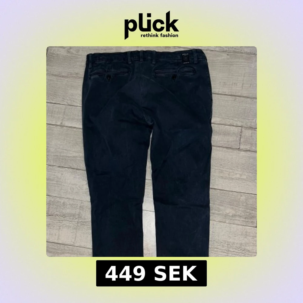 Ett par snygga mörkblå Hyperflex byxor från Replay, modell Zeumar. Byxorna har en klassisk design med fickor fram och bak. Knappt använda. Storlek: W33 L32 Nypris: 1599:-