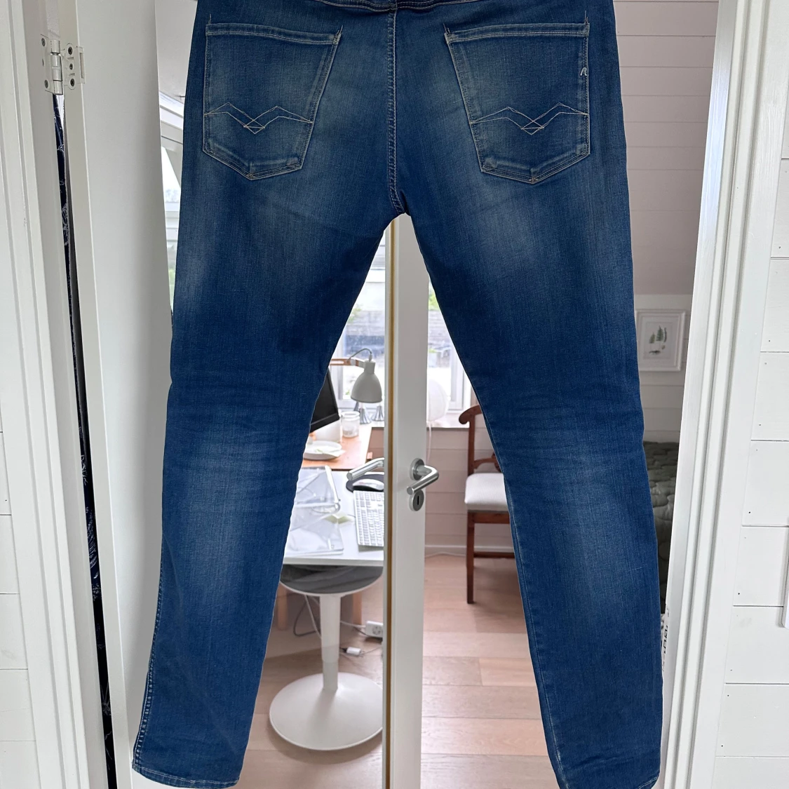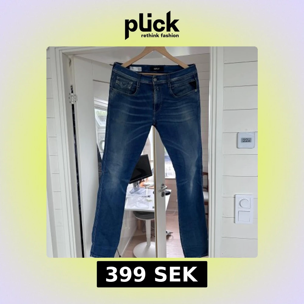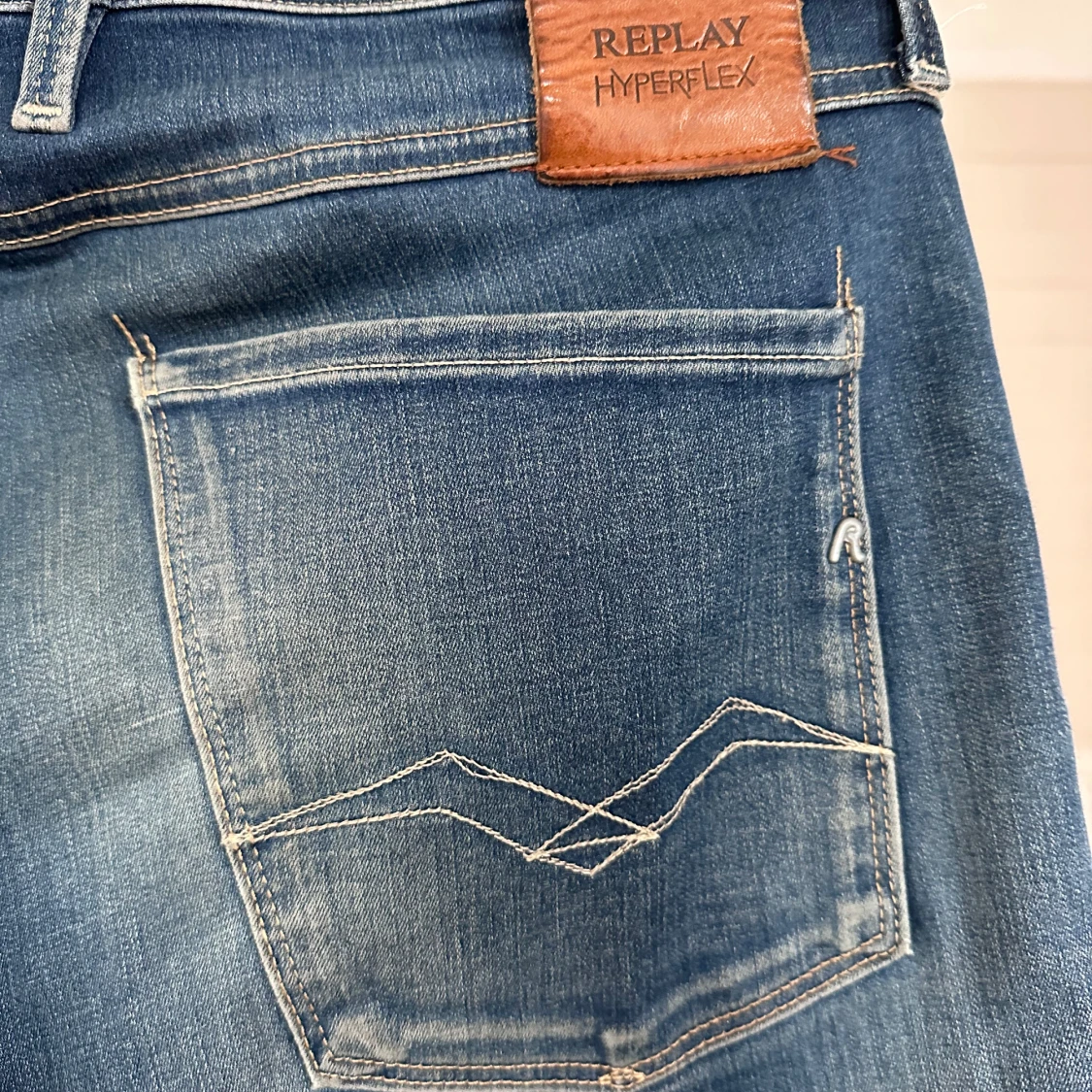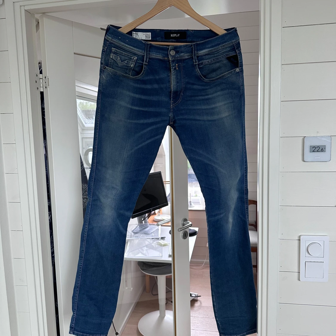 Säljer ett par blå Replay Hyperflex Anbass jeans i storlek 34 sitter mer som storlek 33. Använder inte alls därav säljer jag dem. Skriv gärna vid intresse eller frågor!