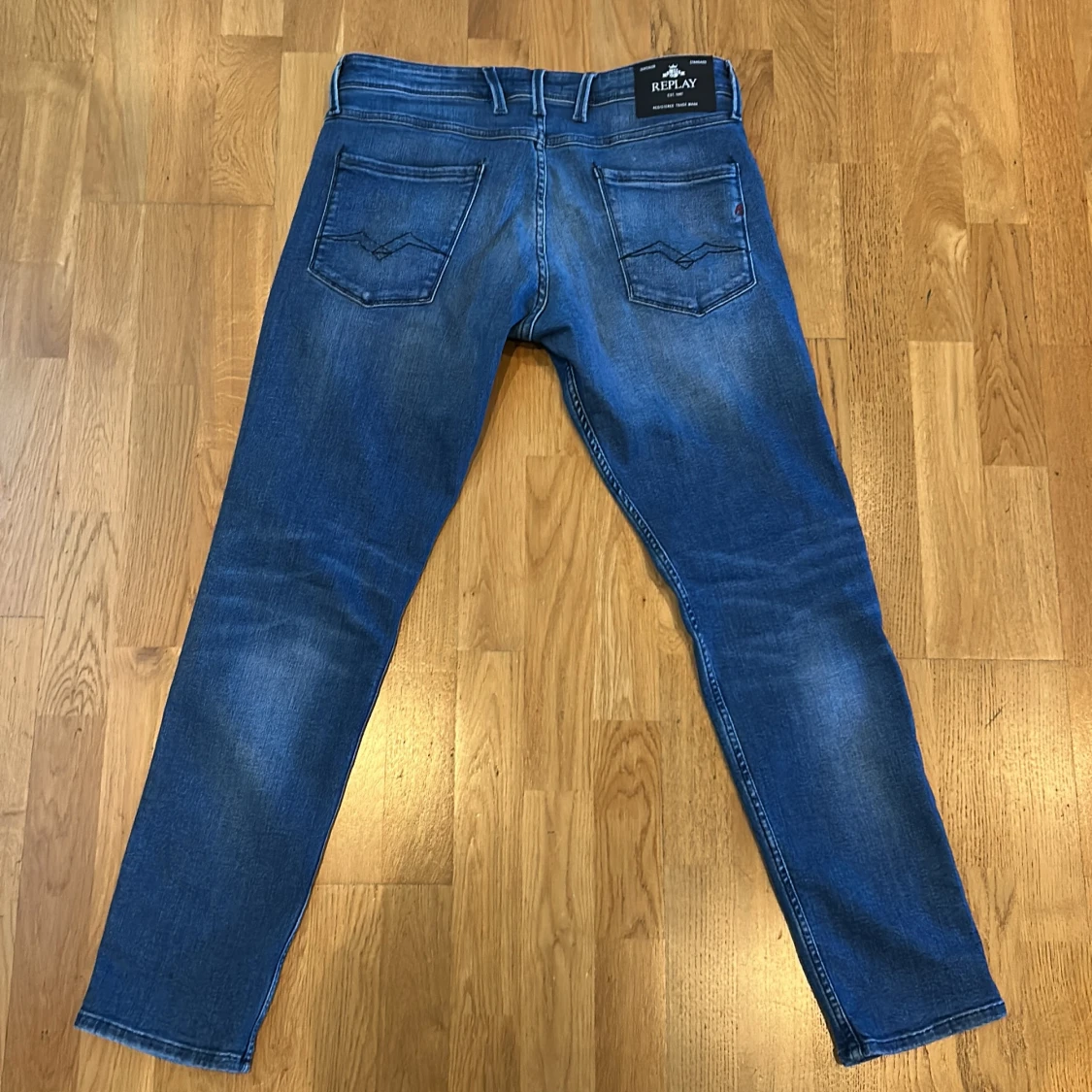 Säljer ett par blå Replay Anbass slim jeans med klassisk femficksdesign och tillverkade i mjukt denimtyg. Perfekta för dig som gillar en tidlös och clean look. Använda bara typ 4-5 gånger så helt nya egentligen Bara att skriva om du har eventuella frågor. Storlek: W34 L32.