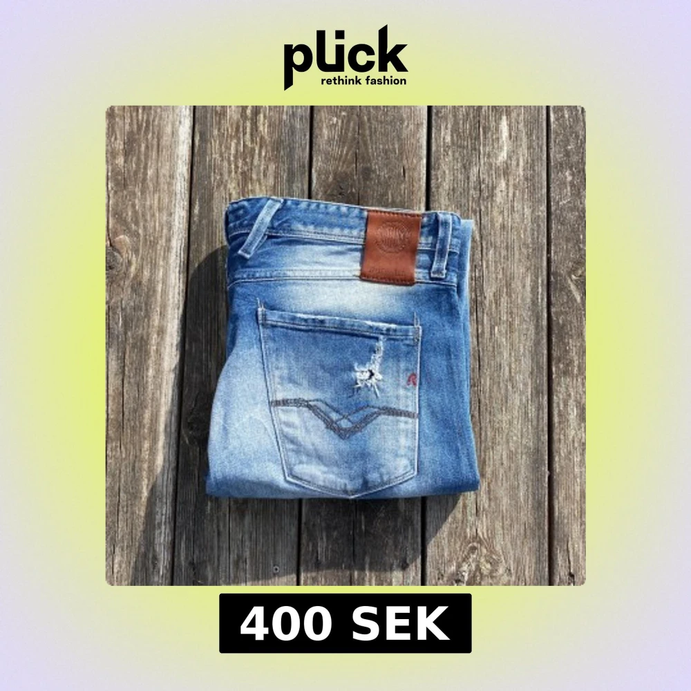 Snygga blå jeans från Replay med slitna detaljer och en klassisk femficksdesign. De har en straight passform och är perfekta för en avslappnad stil. W34 L32