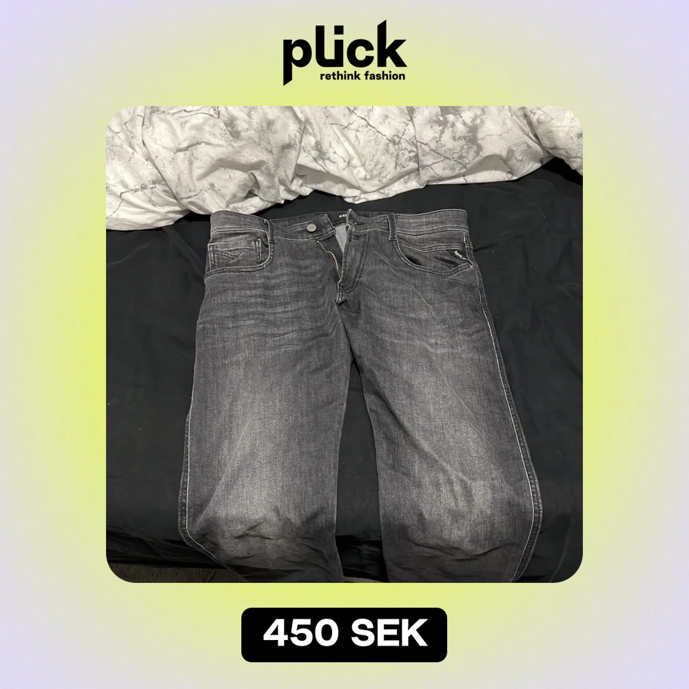 Säljer ett par grå Replay Anbass jeans i bra skick. De har en snygg, tvättad look och klassisk femficksdesign. Perfekta för både vardag och fest. Passar till det mesta och är superbekväma! Använda 1 gång, strl W34,L32