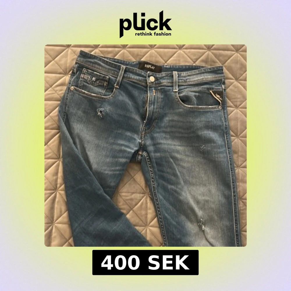 Snygga blå jeans från Replay med klassisk femficksdesign och slitna detaljer framtill och på bakfickan. Jeansen har raka ben och kontrastsömmar, samt läderpatch med Replay-logga bak. Perfekta för dig som gillar en avslappnad men stilren look.