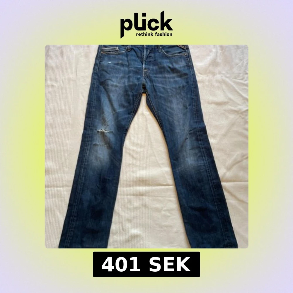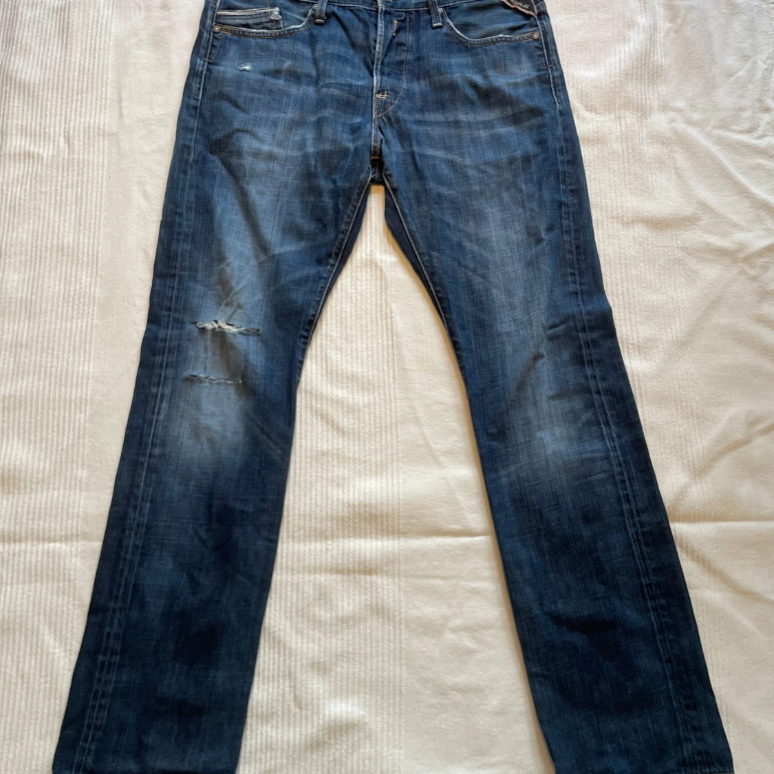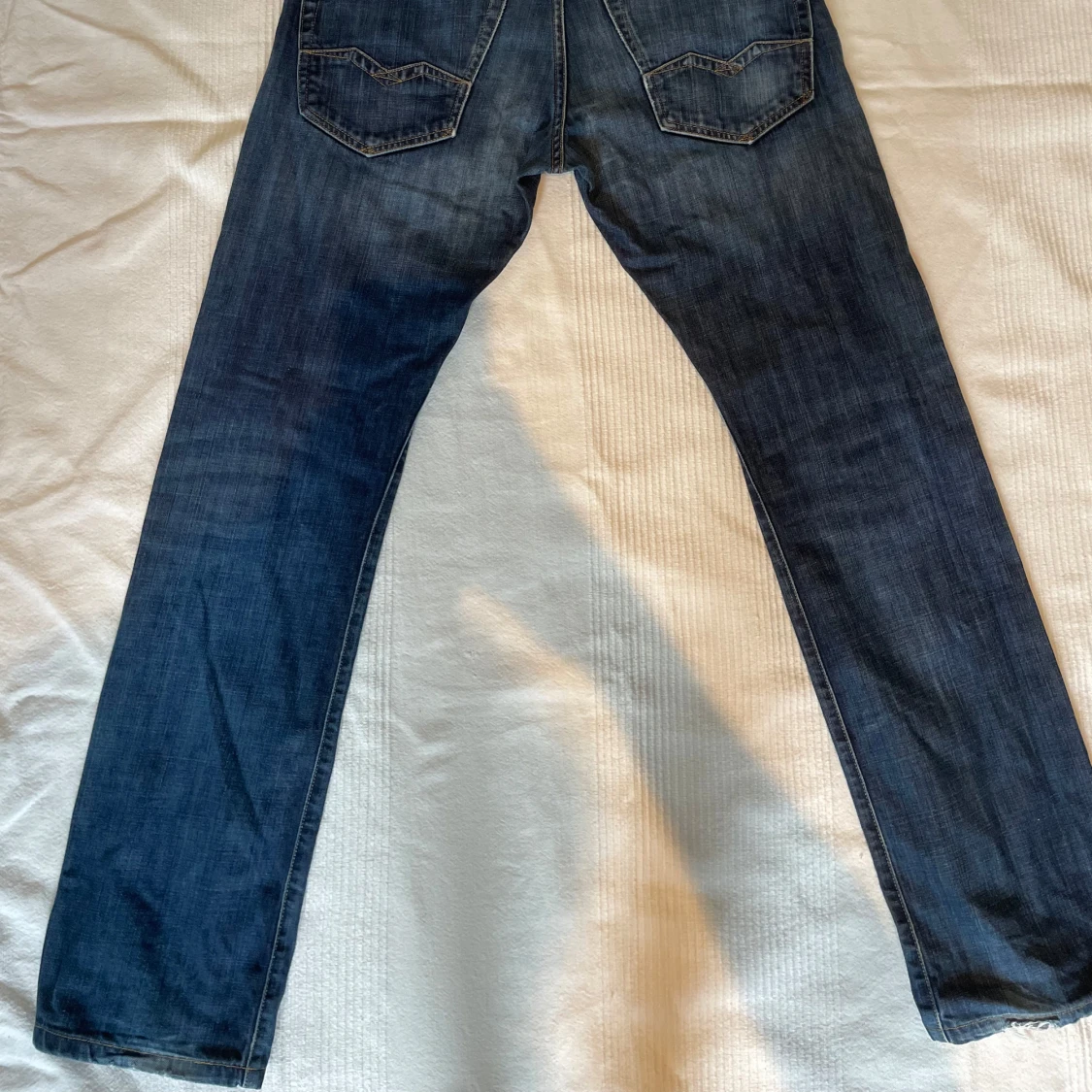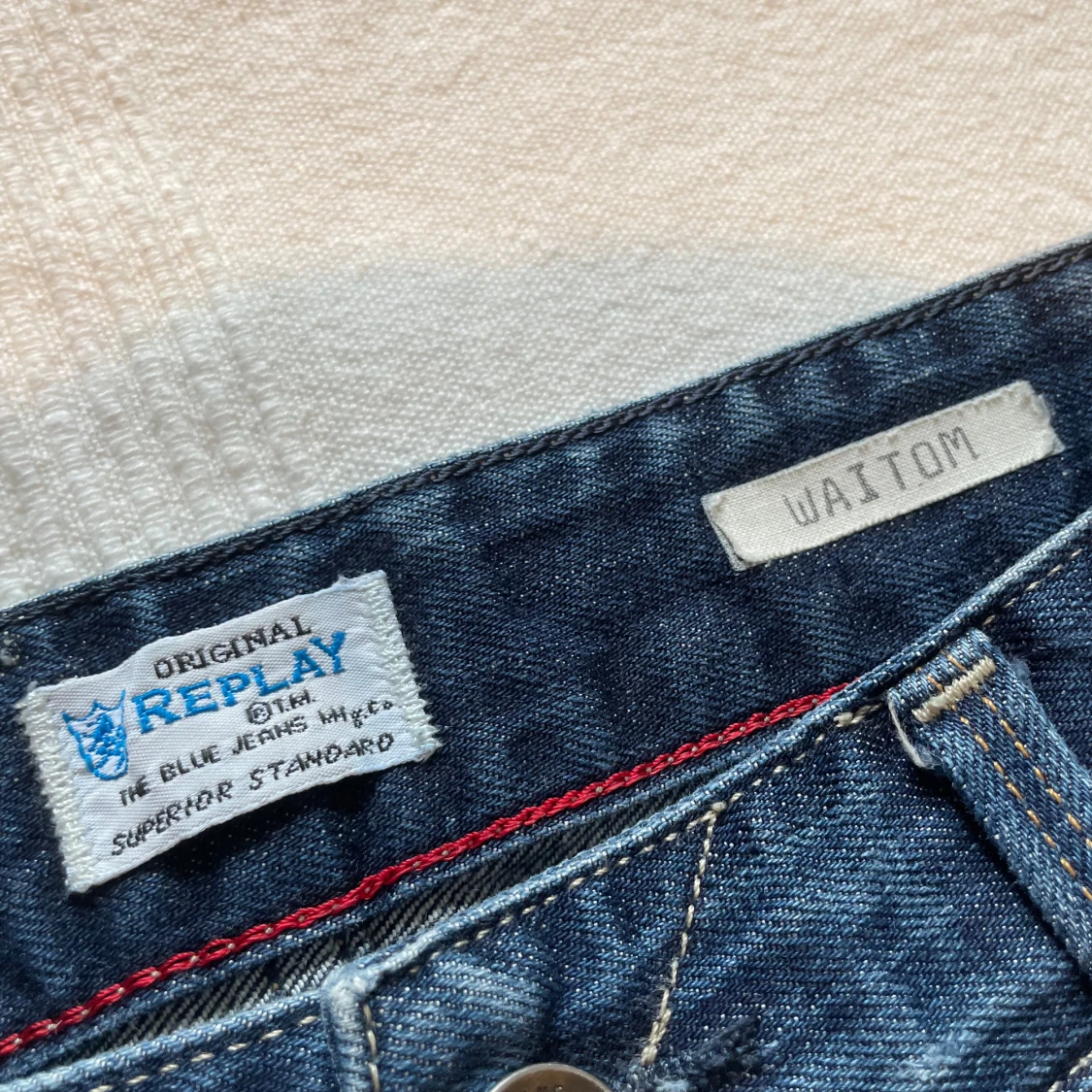 Säljer ett par Replay Waitom jeans i klassisk blå/marinblå färg med slitningar. Jeansen har rak passform, fem fickor och snygga kontrastsömmar. Perfekta för dig som gillar en fräsch, snygg och avslappnad samt stilren look. Nypris: 1299, mitt pris: 401 kr + Fri frakt🤩.