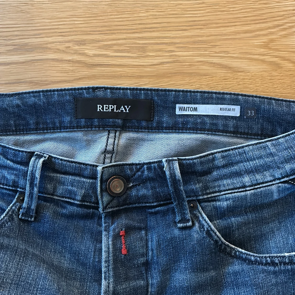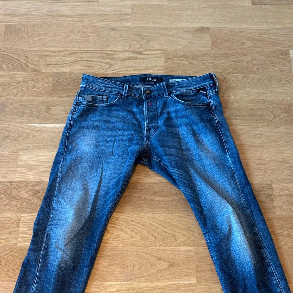 Säljer ett par klassiska blå jeans från Replay, modell Waitom. Byxorna har normal passform. Bara å skriva vid funderingar