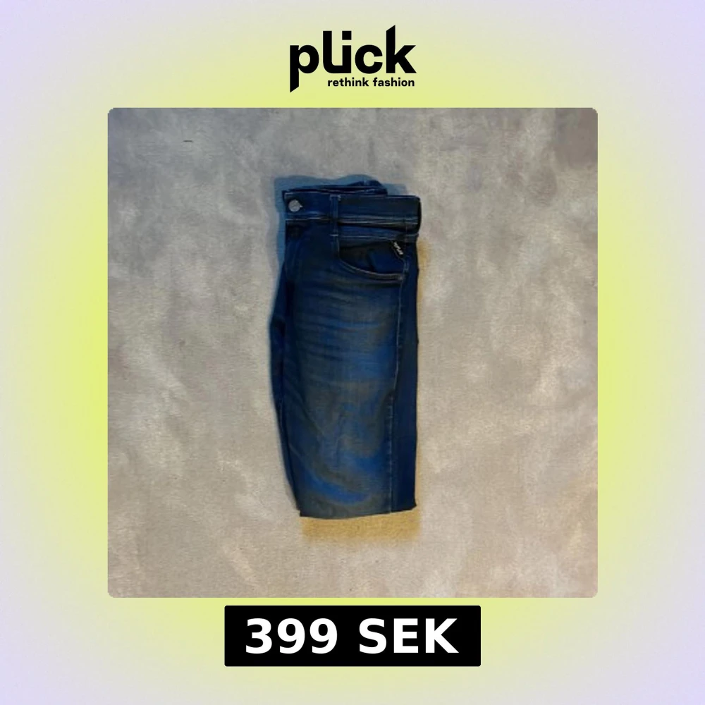Säljer ett par mörkblå jeansbyxor från Replay med klassisk femficksdesign och raka ben. Jeansen har en snygg tvätt och detaljerade sömmar, samt Replay-logga på bakfickan. Perfekta för dig som gillar stilrena och tidlösa jeans. W28 L31