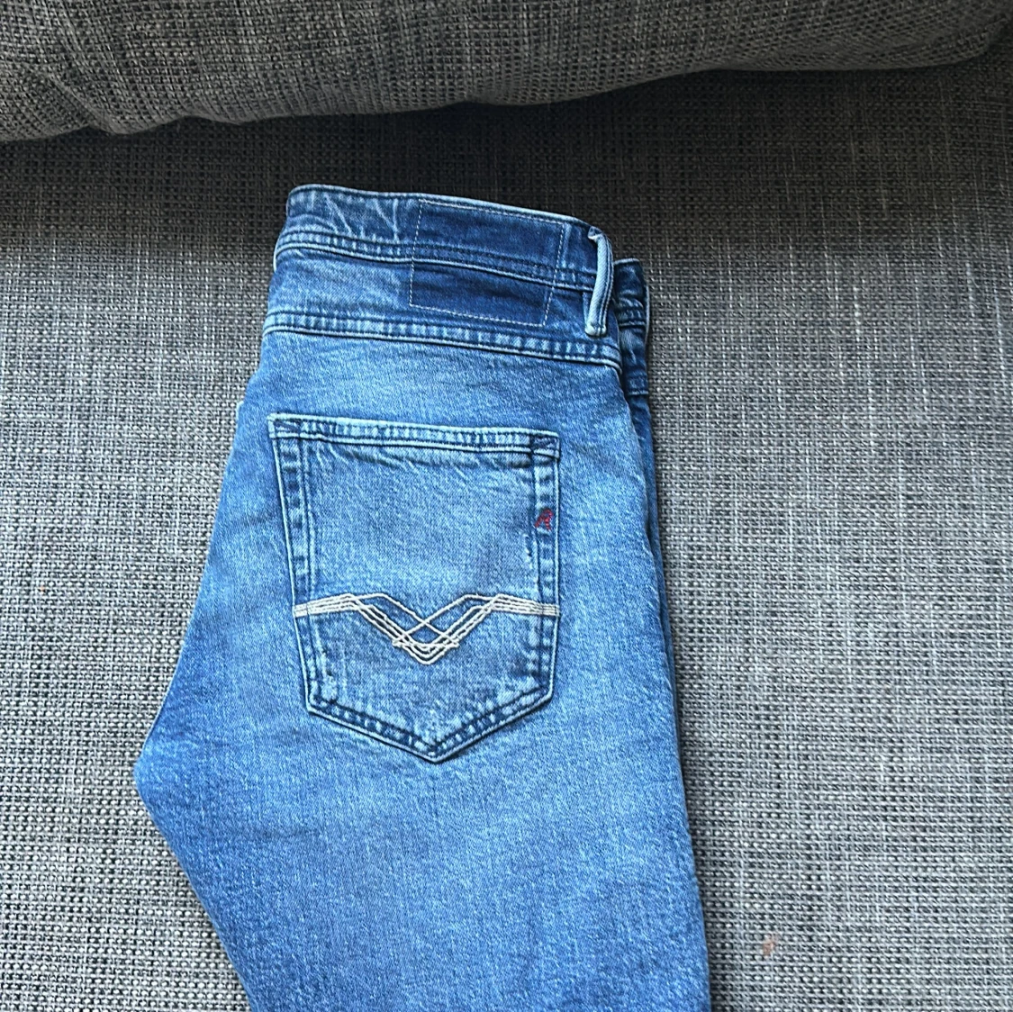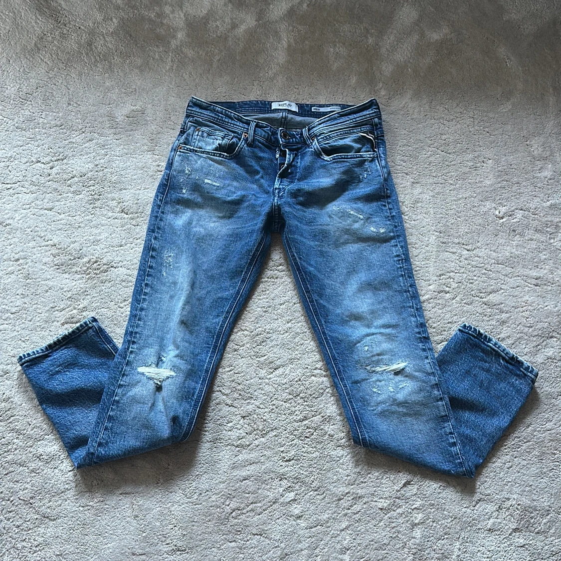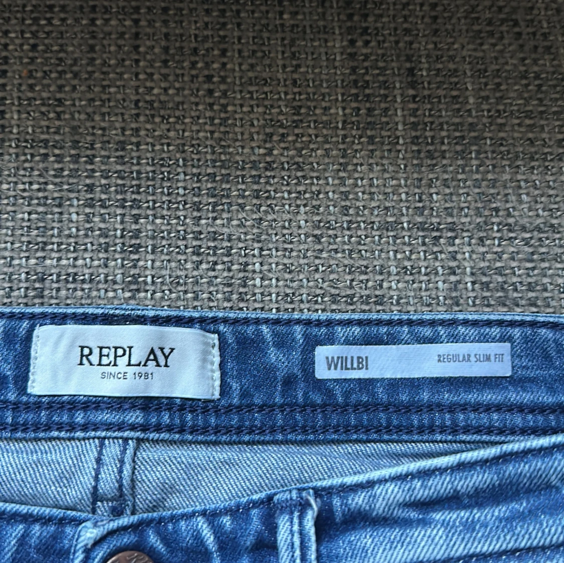 Säljer ett par Replay Willbi jeans i klassisk blå tvätt med regular slim fit. Ny pris 2000kr.Jeansen har snygga slitningar och detaljer på benen samt broderad bakficka. Passar dig som gillar en modern och avslappnad stil. Materialet är jeans och de har fem fickor och knappgylf.