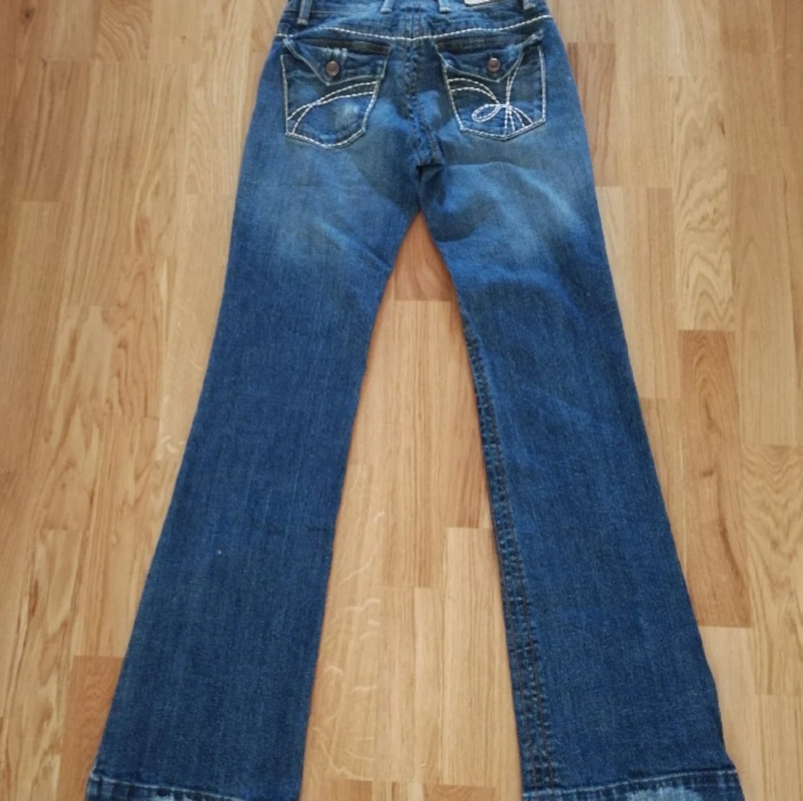 Blå bootcut jeans med kontrastsömmar