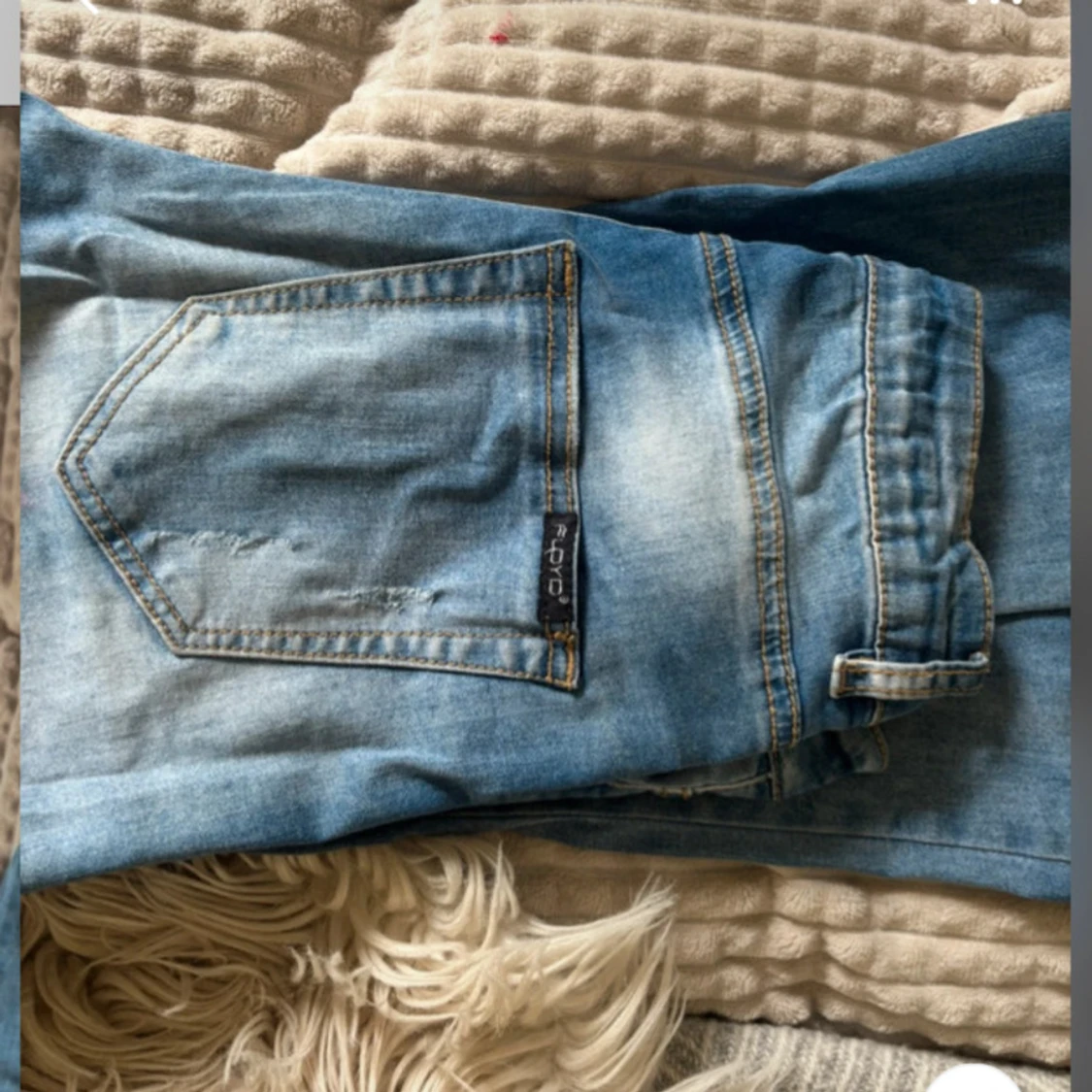 Snygga blå jeans med bootcut-modell och ljusa slitningar framtill. Jeansen har en cool, utsvängd passform och är tillverkade i mjukt denimtyg.